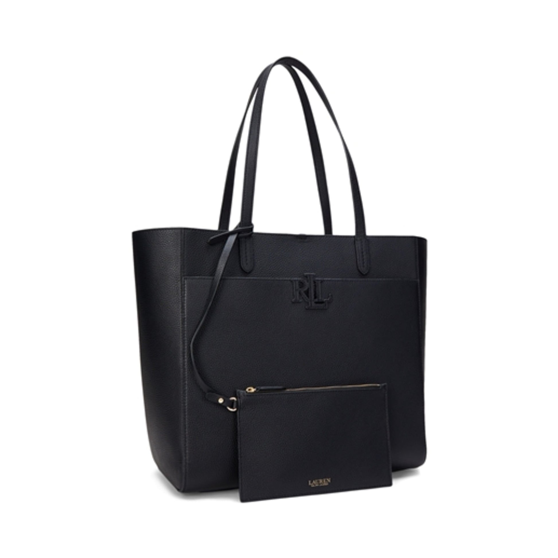 A stylish and practical addition to Lauren Ralph Laurens Cameryn collection, this tote bag features a spacious silhouette, which is realized in pebbled leather for subtle texture and refined style. A slip pocket at the exterior provides convenient access to your smaller items, like a phone or keys, while a stacked “LRL” logo at the front adds signature style. This size is suitable for a laptop, tablet, and other personal electronic devices.