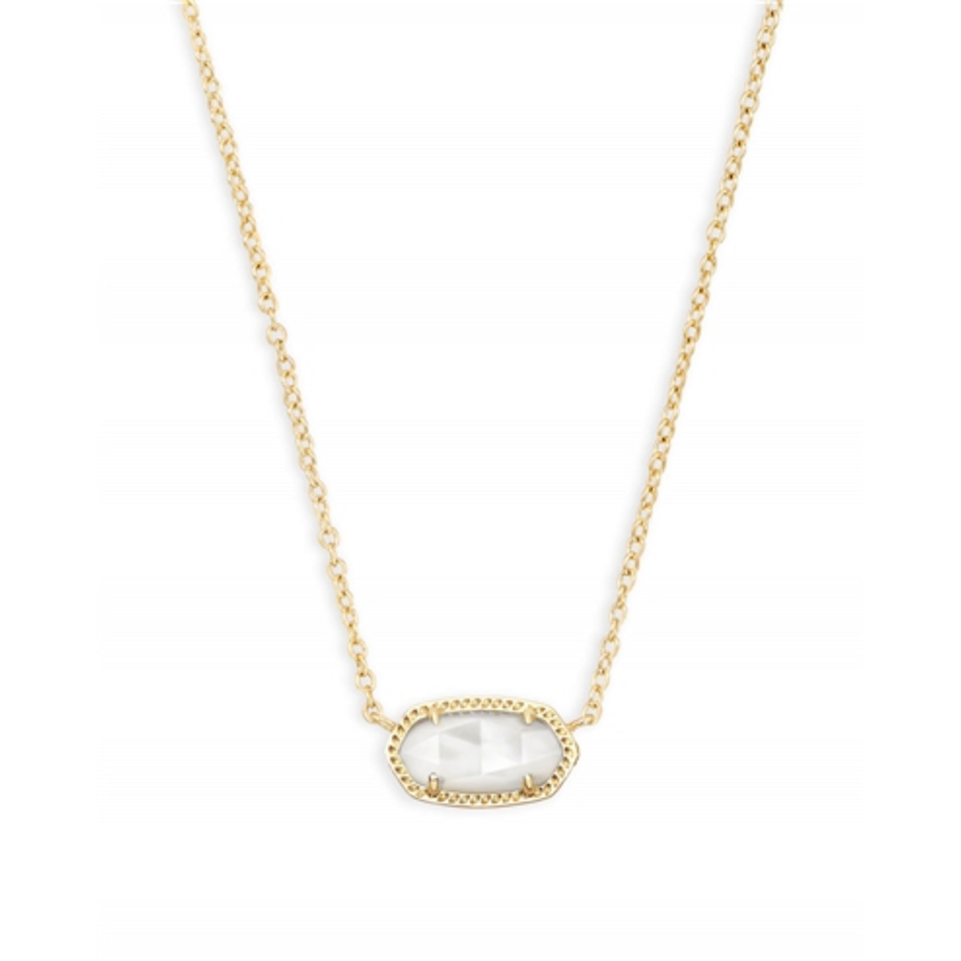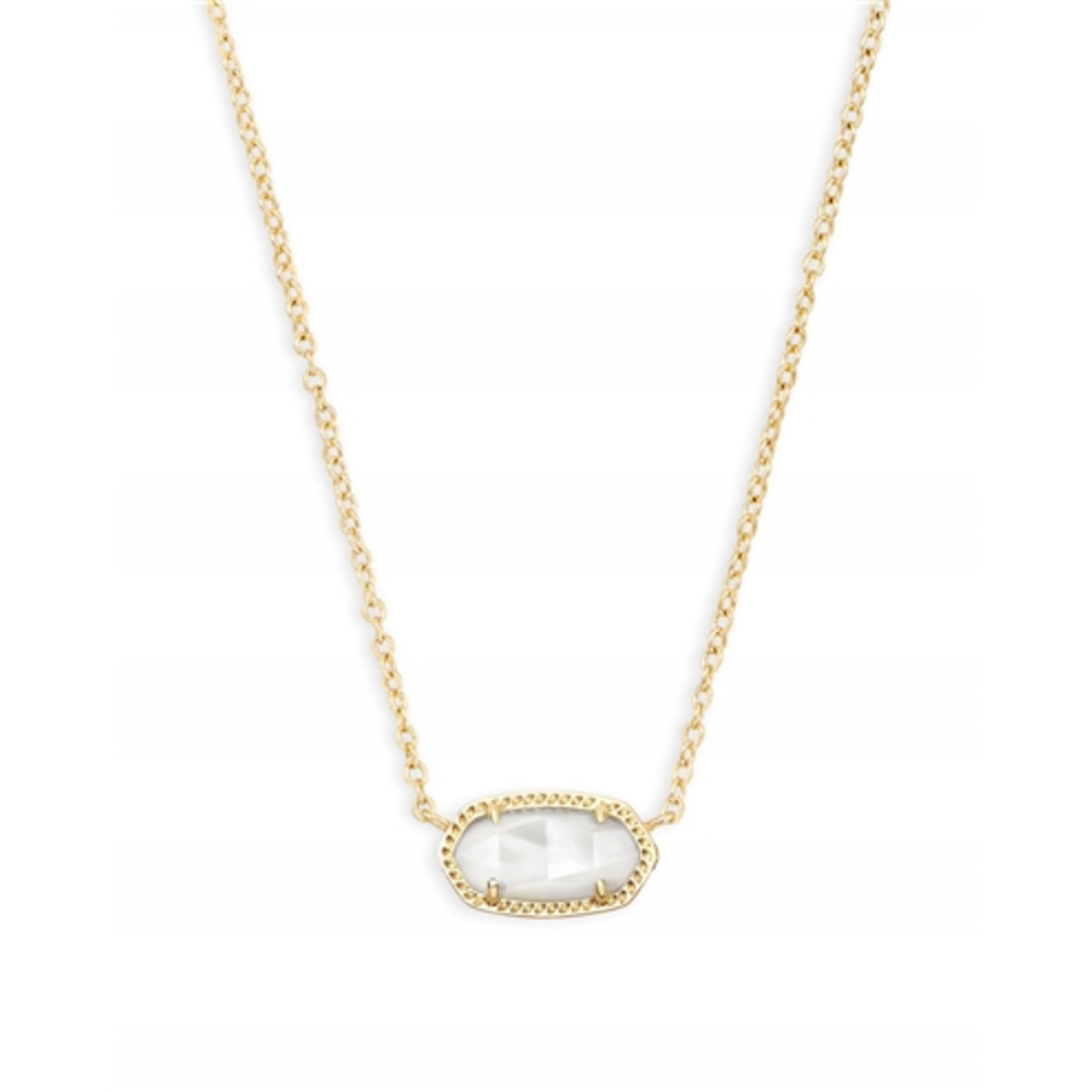 This magnificent looking with a dainty stone and delicate metallic chain combine to create the Elisa Pendant Necklace in Ivory Pearl, your new favorite wear-anywhere accessory. This pendant necklace can be paired with any look, providing that extra touch of timeless style. 14K Gold Plated Over Brass Size: 0.63"L x 0.38"W stationary pendant, 15" chain with 2" extender. Lobster claw closure. Material: ivory mother-of-pearl.
