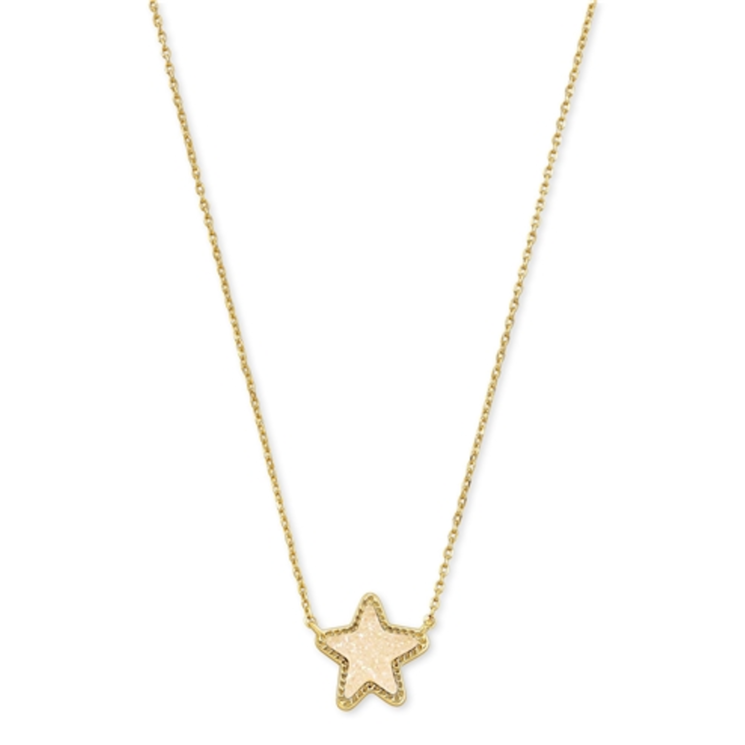 An iconic symbol and a jewelry box staple team up to create the sparkling Jae Star Gold Pendant Necklace in Iridescent Drusy. Metal: 14k Gold Plated Over Brass, Material: Iridescent Drusy, Closure: Adjustable lobster claw, Size: 17" chain, 0.57" L X 0.55" W pendant"
