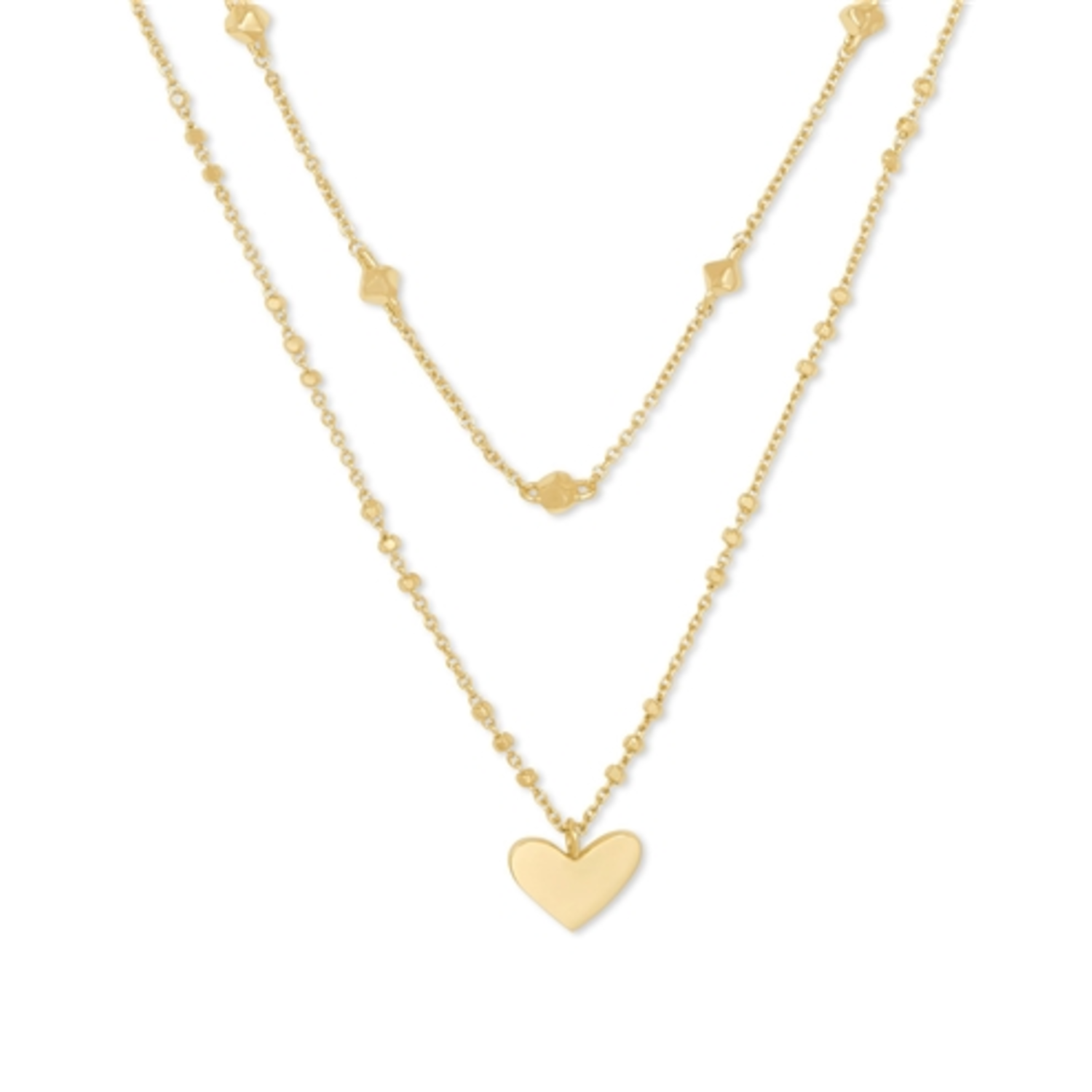 Love to layer? Meet your match in The Ari Heart Multi Strand Necklace in Gold. A beloved shape pairs with a petite chain, hand-picked by our design team, to create an all-new layered look. Size: 0.44" L x 0.33" W, 16" L, 14" L chains + 2" extender.