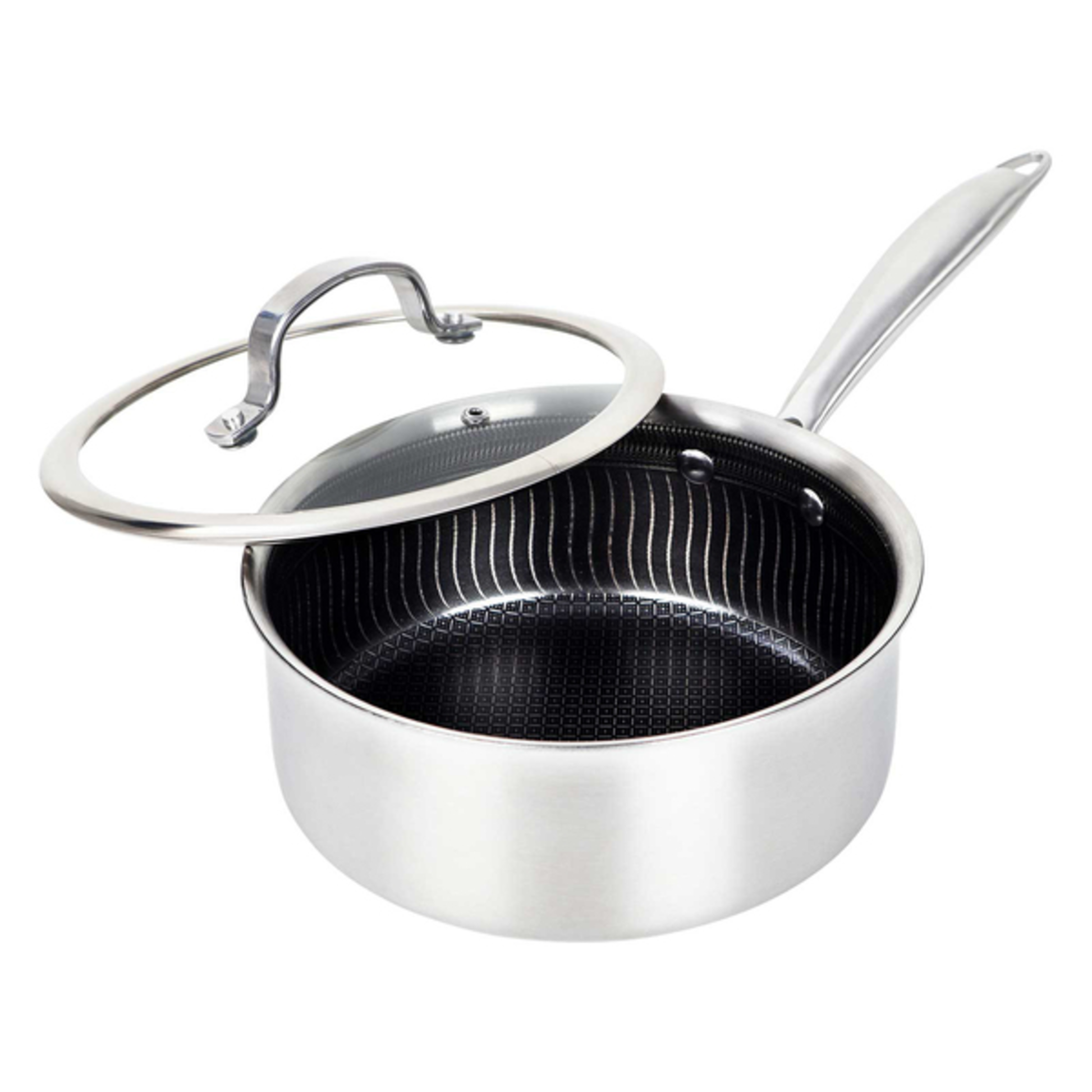 Brentwood B-SPH18L 3-Ply Hybrid Non-Stick Stainless Steel Saucepan with Tempered Glass Lid (2.2 Qt.)