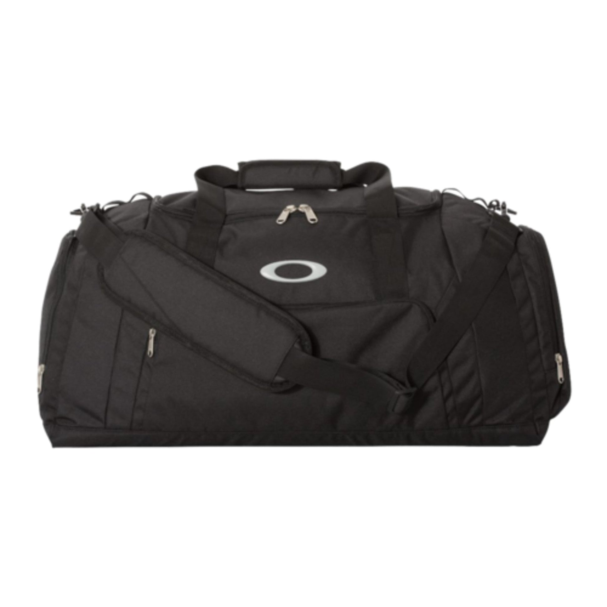 The Gym to Street Duffel is a great grab-and-go bag for athletes on their way to the gym or a spontaneous overnight adventure. Dual handles and a removable, adjustable air mesh shoulder strap offer versatile and comfortable carrying options, while abrasion-resistant construction provides lasting durability. Made with a front organizer pocket, side pocket, and fleeced-line interior pocket, this convenient Oakley duffel bag keeps your athletic goods easily accessible and well organized. Color: Blackout