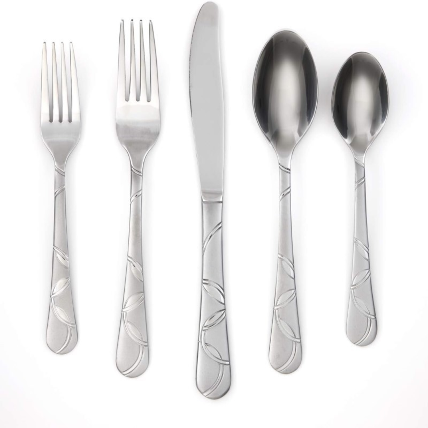 From Cambridge Silversmiths, the Felicity Sand flatware set features a playful design combining both polished mirror and glistening sand-blasted finishes. The timeless pattern complements any dinnerware. Perfect for everyday use and special occasions. Stainless steel is dishwasher safe and never needs polishing. Includes 4 each: salad forks, dinner forks, dinner knives, dinner spoons, and teaspoons