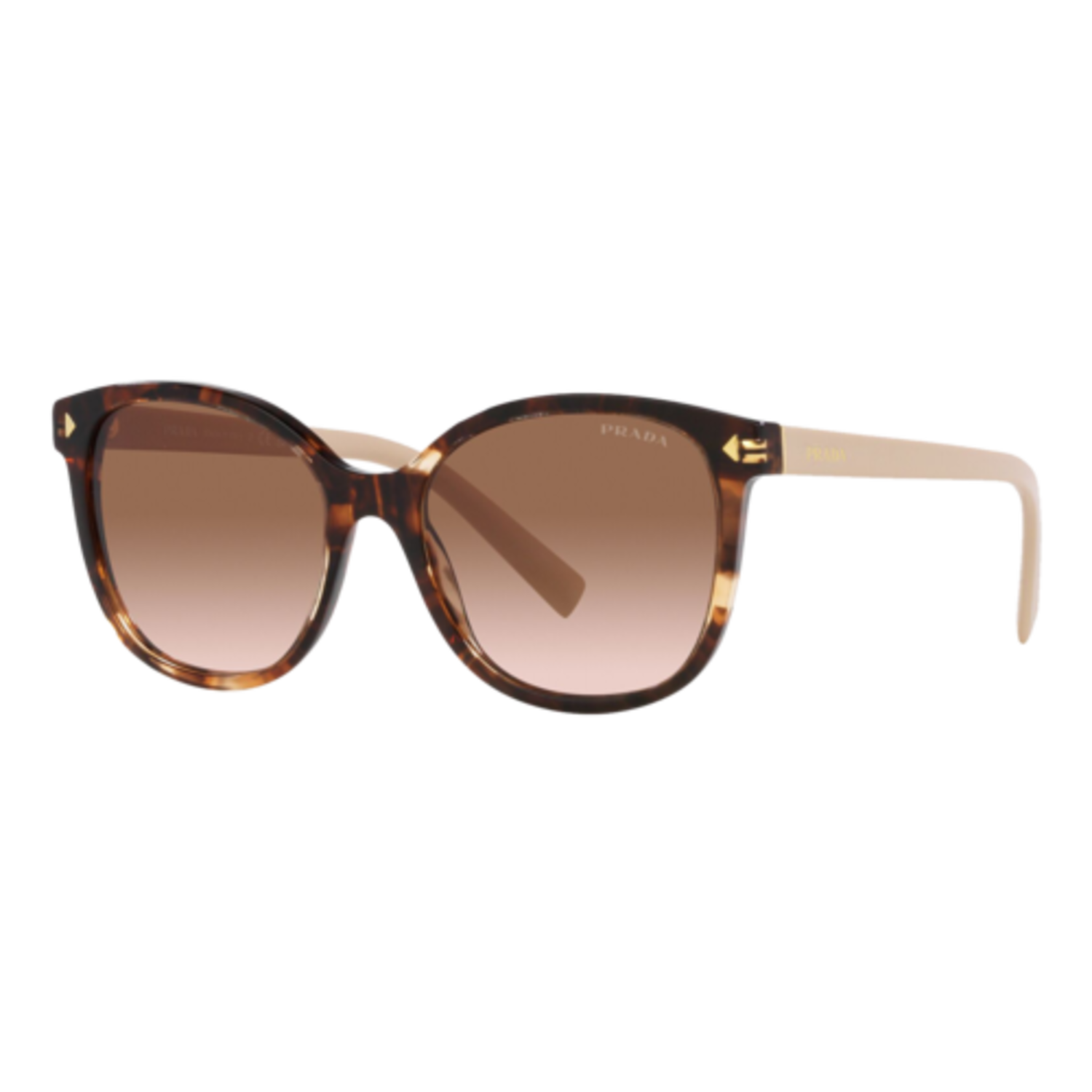 The Prada PR22ZS glasses are a modern classic with a luxurious twist. The gradient lenses coupled with the soft-square silhouette add sophistication, while the triangle metal details, with sleek logo lettering, make all the difference. The new temple design is perfect for everyday luxury and comfort - offering a fashion-forward look that stands out without any effort at all. Eye size: 53; Frame: Caramel Tortoise; Lens: Brown Gradient; Lens Material: Standard Plastic