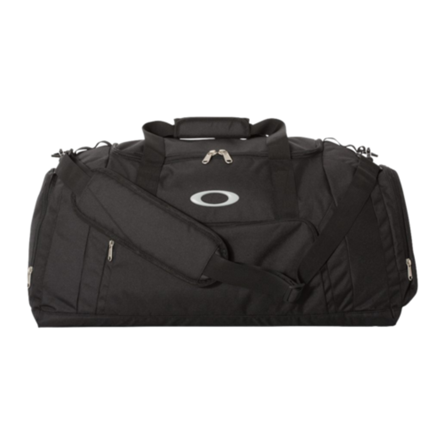 The Gym to Street Duffel is a great grab-and-go bag for athletes on their way to the gym or a spontaneous overnight adventure. Dual handles and a removable, adjustable air mesh shoulder strap offer versatile and comfortable carrying options, while abrasion-resistant construction provides lasting durability. Made with a front organizer pocket, side pocket, and fleeced-line interior pocket, this convenient Oakley duffel bag keeps your athletic goods easily accessible and well organized. Color: Blackout