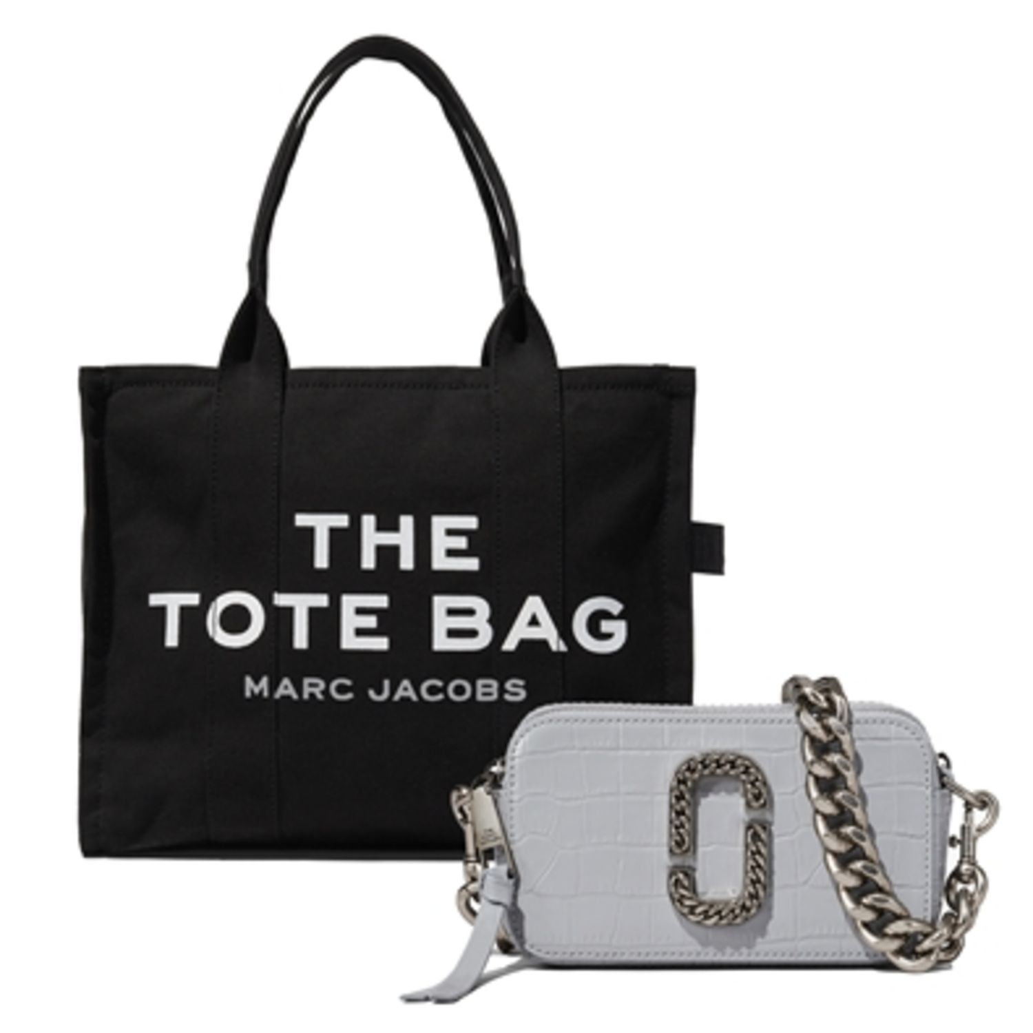 This versatile set has fun written all over it. The Large Tote - Large canvas tote featuring screen printed logo and top zipper closure. Interior zip pocket. Cotton. 17" L x 6" D x 13" H. Handle Drop 9in. Snapshot Croc Embossed - This crocodile-textured camera bag is spotlighted by its antique silver chain link hardware two strap options. 100% leather. Antique silver hardware. Chain strap, Leather strap, Dual zip closures. Dimension: 7.09" x 2.36" x 4.13"