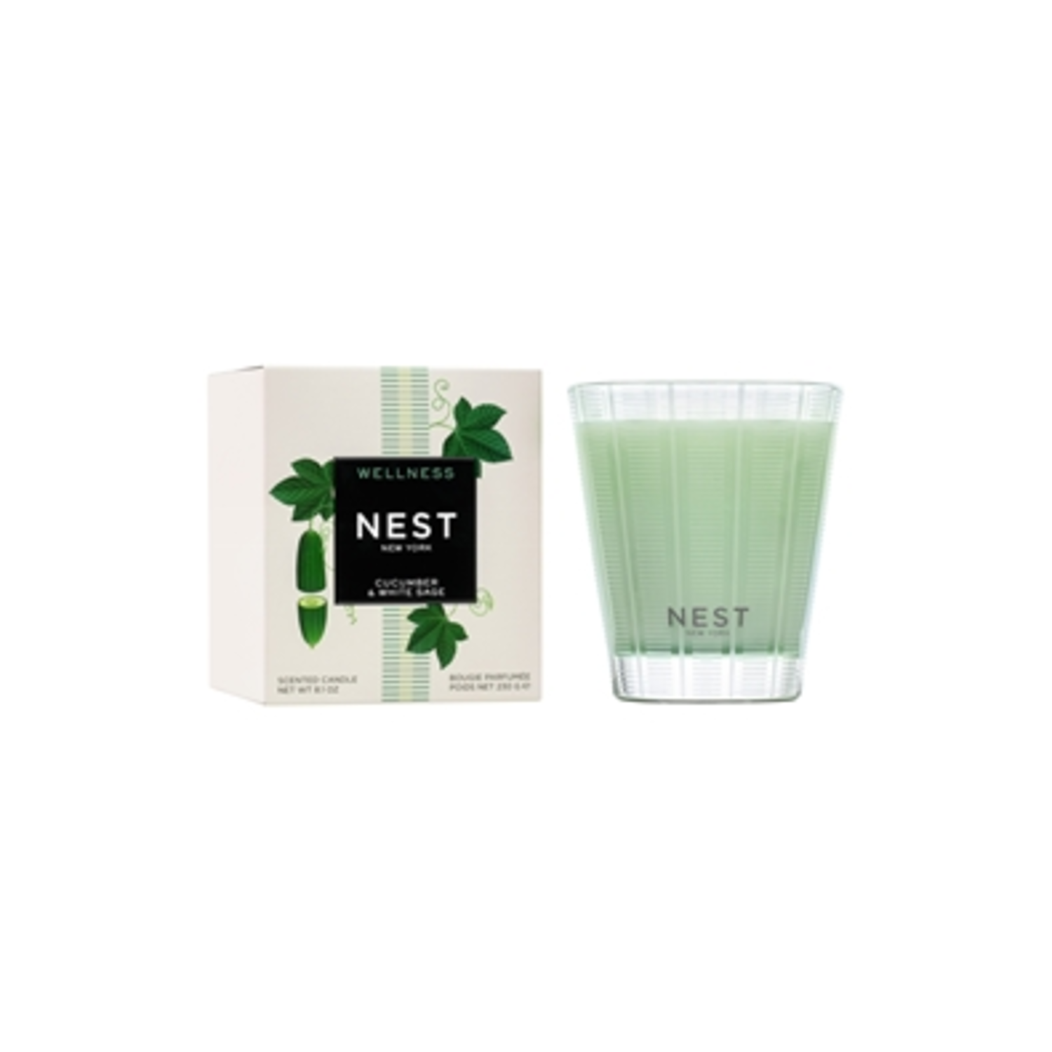 De-stress and refresh with notes of cucumber and white sage wrapped with hints of lavender, a wellness fragrance that helps create a sense of calm and renewal. Light, green-tinted wax housed in a glass vessel of the same color etched with elegant, frosted stripes. Dimensions: 3.5" D x 4.125" H. Up to 60 hours burn time. Weight: 8.1 oz | 230 g. Cruelty-Free & Vegan. Free from Formaldehyde, Parabens, Phthalates. Reusable Glass Holder. Clean Burn with 100% Lead-Free and Cotton Wicks. Made in USA.