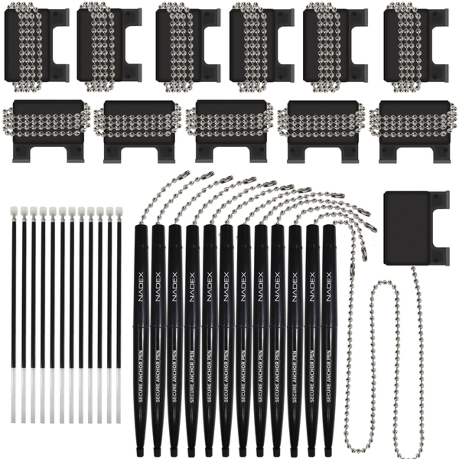 Nadex Coins NCC1-1135 Ball and Chain Security Pen Set (12 Pen; Black)