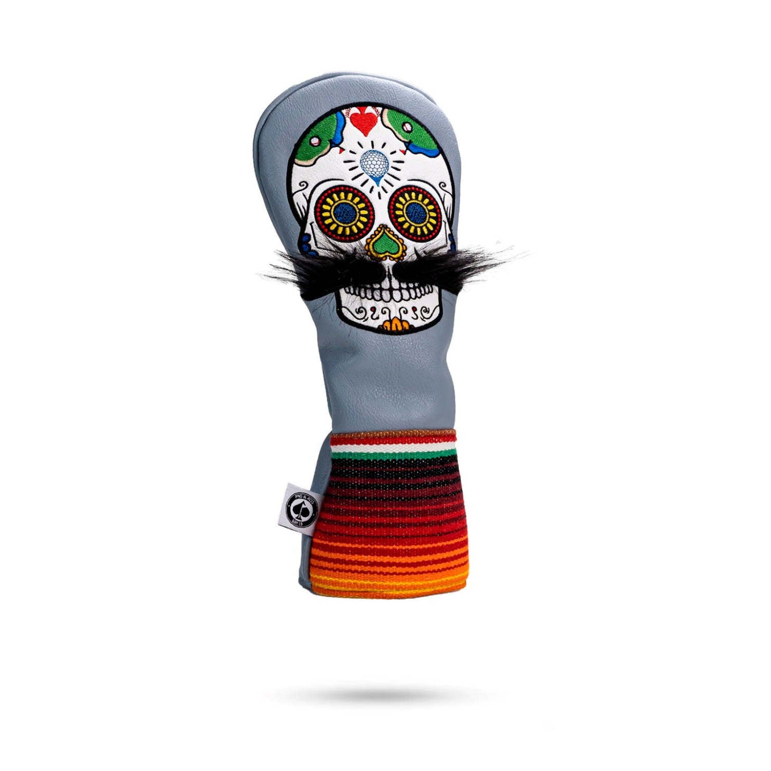 Stylize and customize the look of your golf bag with this high quality, hand-made fairway headcover. Featuring hand sewn panels and faux mustache with embroidered Sugar Skull design. The lower part of this cover is made from an authentic Mexican blanket.