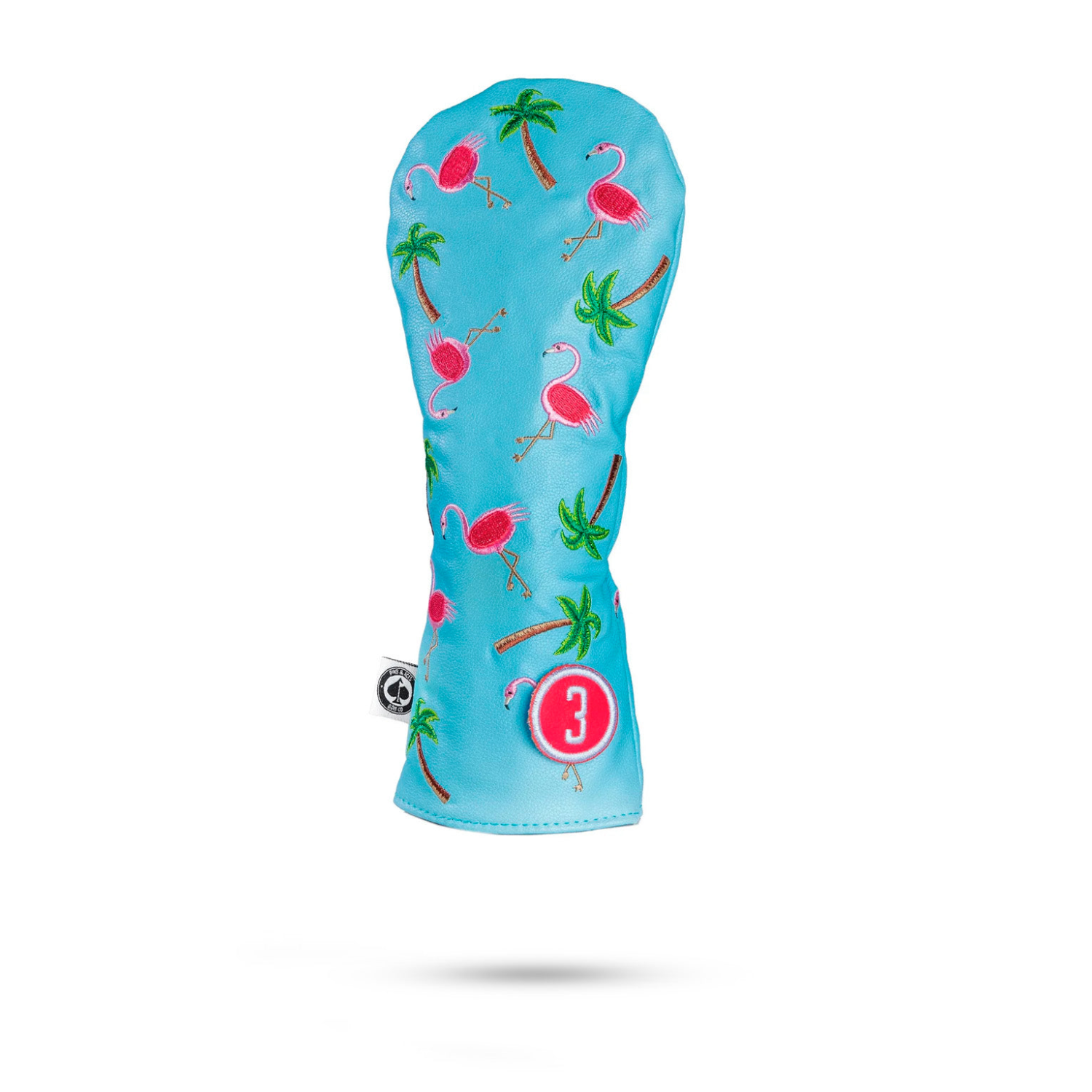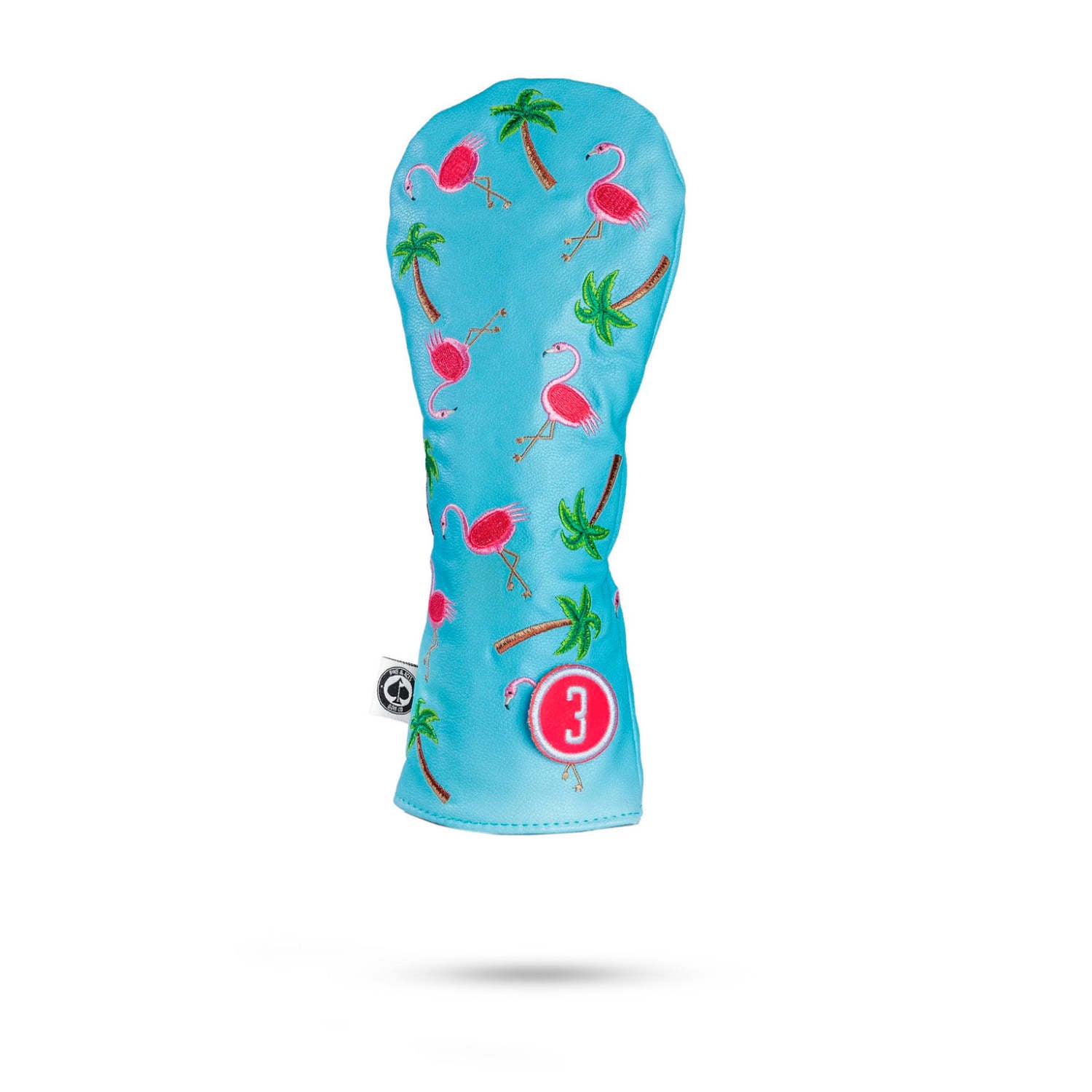 Stylize and customize the look of your golf bag with this high quality, hand-made fairway wood headcover. Featuring hand sewn panels and construction with embroidered flamingo's and palm trees. This Dancing Flamingo headcover is tour inspired and trusted by golfers everywhere. Add style to your golf bag and stand out from the competition!