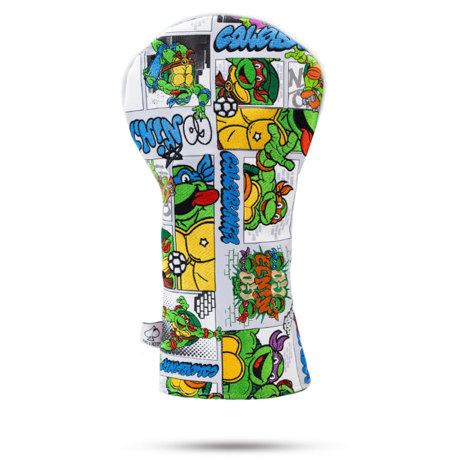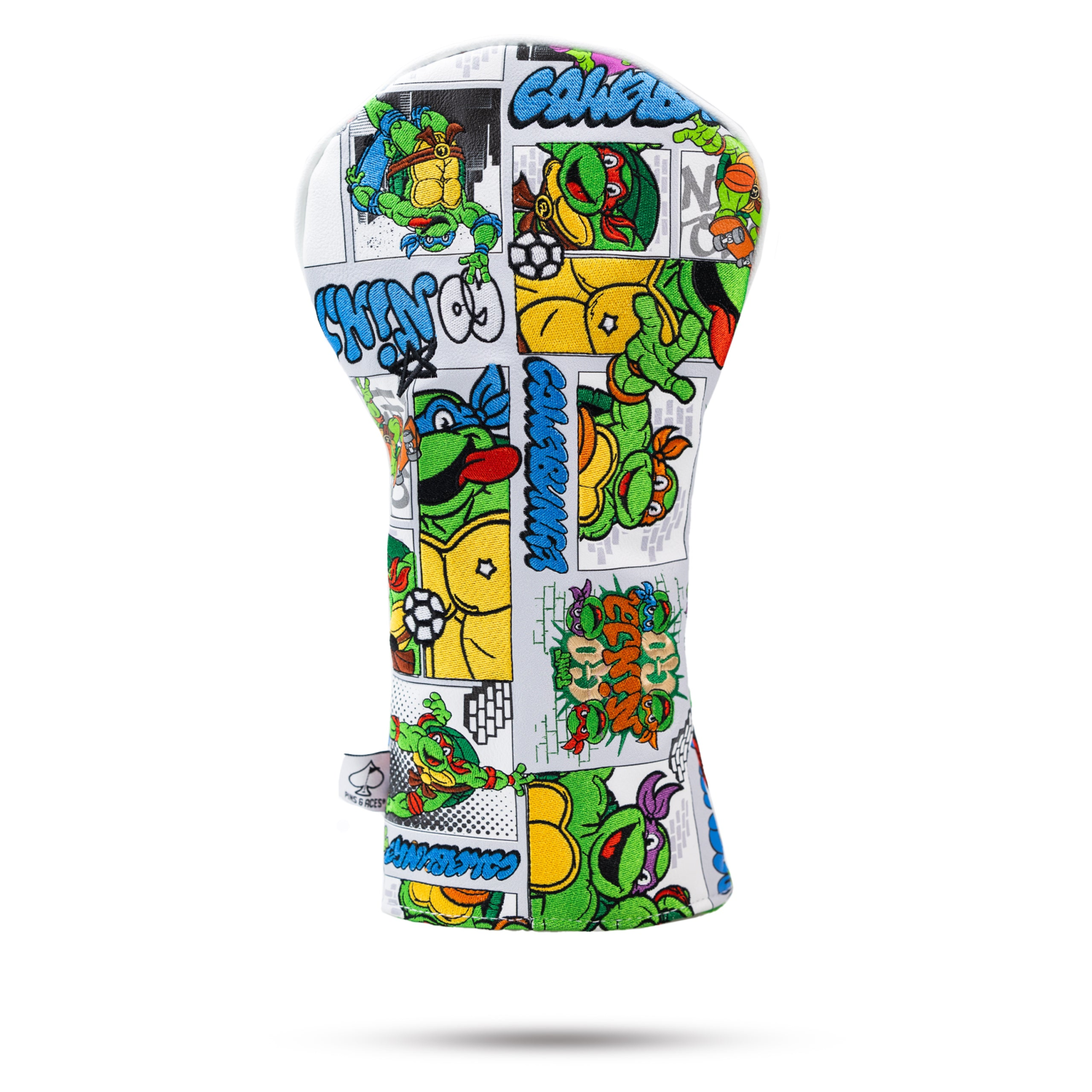 Unleash your inner hero on the golf course with the Pins & Aces x Teenage Mutant Ninja Turtles Collection 2.0 Driver Head Cover. Turn heads on the course with the classic comic strip design that pays homage to the beloved TMNT characters, bringing a playful and nostalgic vibe to your golf gear. Crafted with precision and durability, the head cover ensures your driver stays protected in style. The vibrant colors and iconic comic strip graphics make this limited-edition release a must-have for golfers who crave a unique blend of pop culture and performance. Transform your golf bag into a conversation starter and let the Teenage Mutant Ninja Turtles Collection drive your game to new heights. Cowabunga, golfers – protect your driver with flair!