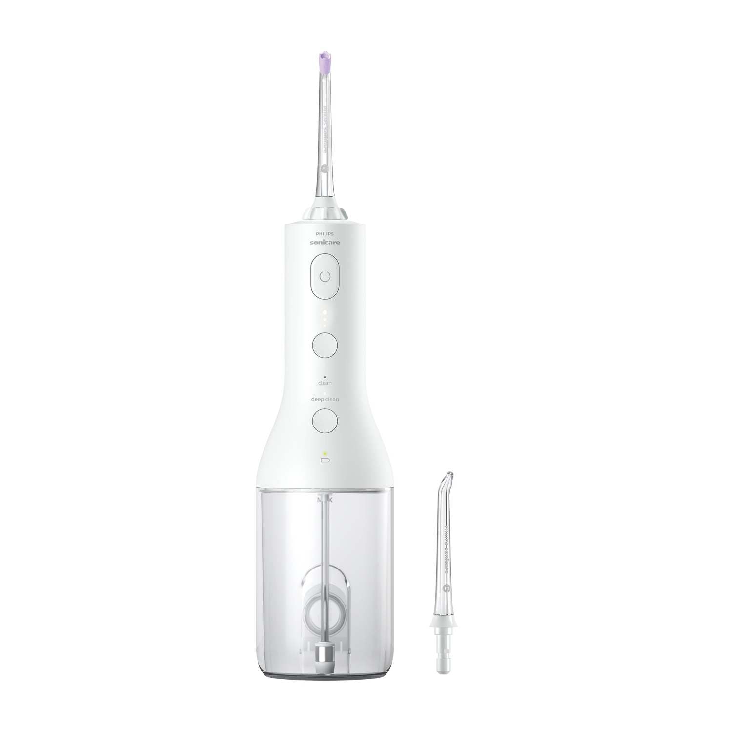 Effortlessly clean between teeth with the power flosser. Helps remove up to 99% of plaque in treated areas. Quad Stream technology - faster deeper clean. Pulse Wave technology - gentle pulses guides from tooth to tooth. 2 Flossing modes and 3 intensities. Nozzle reaches hard-to-reach areas and rotates 360-degrees. Use Standard tip for spot cleaning. Charge with USB-A to small plug cable. 250ml Reservoir is easy to fill. Slim ergonomic handle with easy on/off. Includes: F1 Standard nozzle. F3 Quad Stream nozzle. USB charging cable. USB wall adapter.