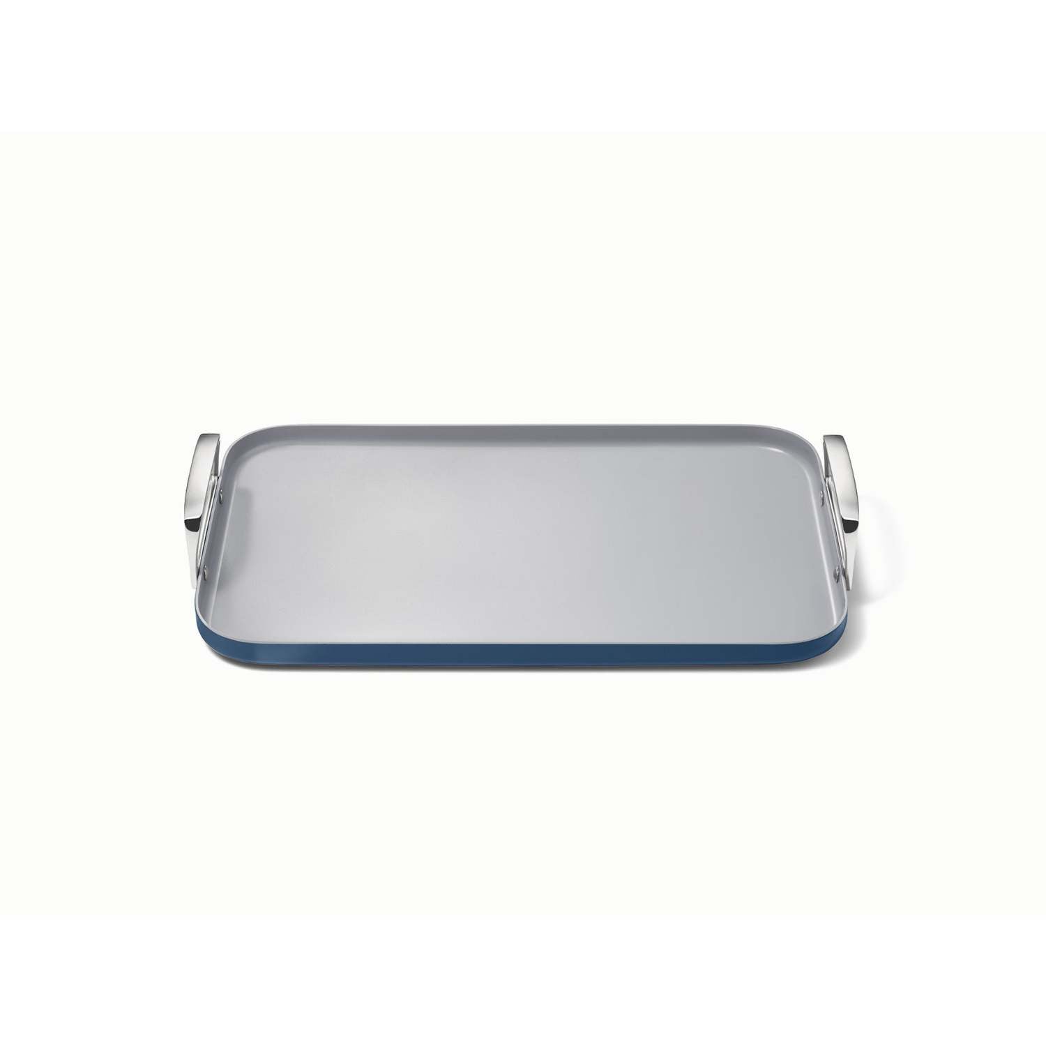 The family sized griddle is ready to handle weekend brunch. Non-toxic ceramic coating supports minimal scrubbing for a spotless clean. Designed to use across two burners for big batch meals in half the time. Surface heats evenly avoiding cool spots and unevenly cooked food. Free of toxic materials for guilt-free cooking. Coating is free of PTFE PFOA PFAS heavy metals and hard anodization. Details and color spark joy in the kitchen and complement any home. Safe to use on electric gas and induction. Oven safe up to 550F. Dimensions: 19" x 12".