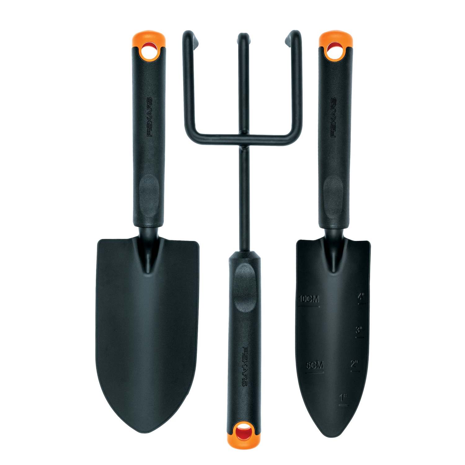 Work in tough soil season after season with this garden hand tool set. Each tool has a sturdy steel head that will not snap off or loosen. Rust resistant coating helps supports lasting strength. Teardrop handles help reduce fatigue. Handle hang holds offer easy storage. Includes a Trowel Transplanter and Cultivator.