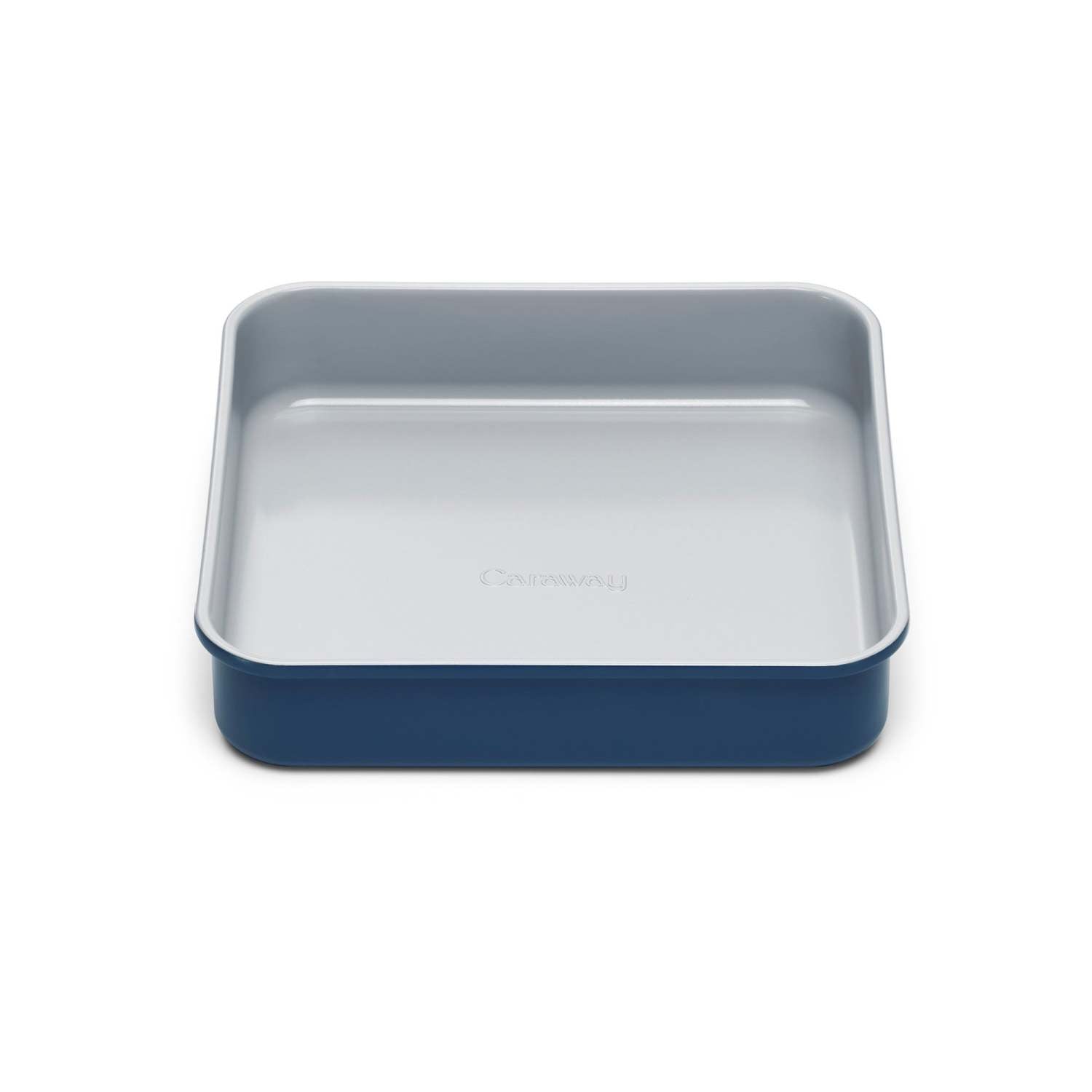 Ready Set Bake - Caraway has made it easier and safer for you. Bake crumbles lemon bars and more with this square pan. Super slick nonstick requires less oil or butter for cooking. Nonstick supports minimal scrubbing for a spotless clean. Coating is free of PTFE PFOA PFAS heavy metals and hard anodization. Surface heats consistently without any hot spots. Details and color spark joy in your kitchen and complement any home. Aluminized steel body. Oven safe up to 550F. Recommend hand wash. Dimensions: 9" x 9".