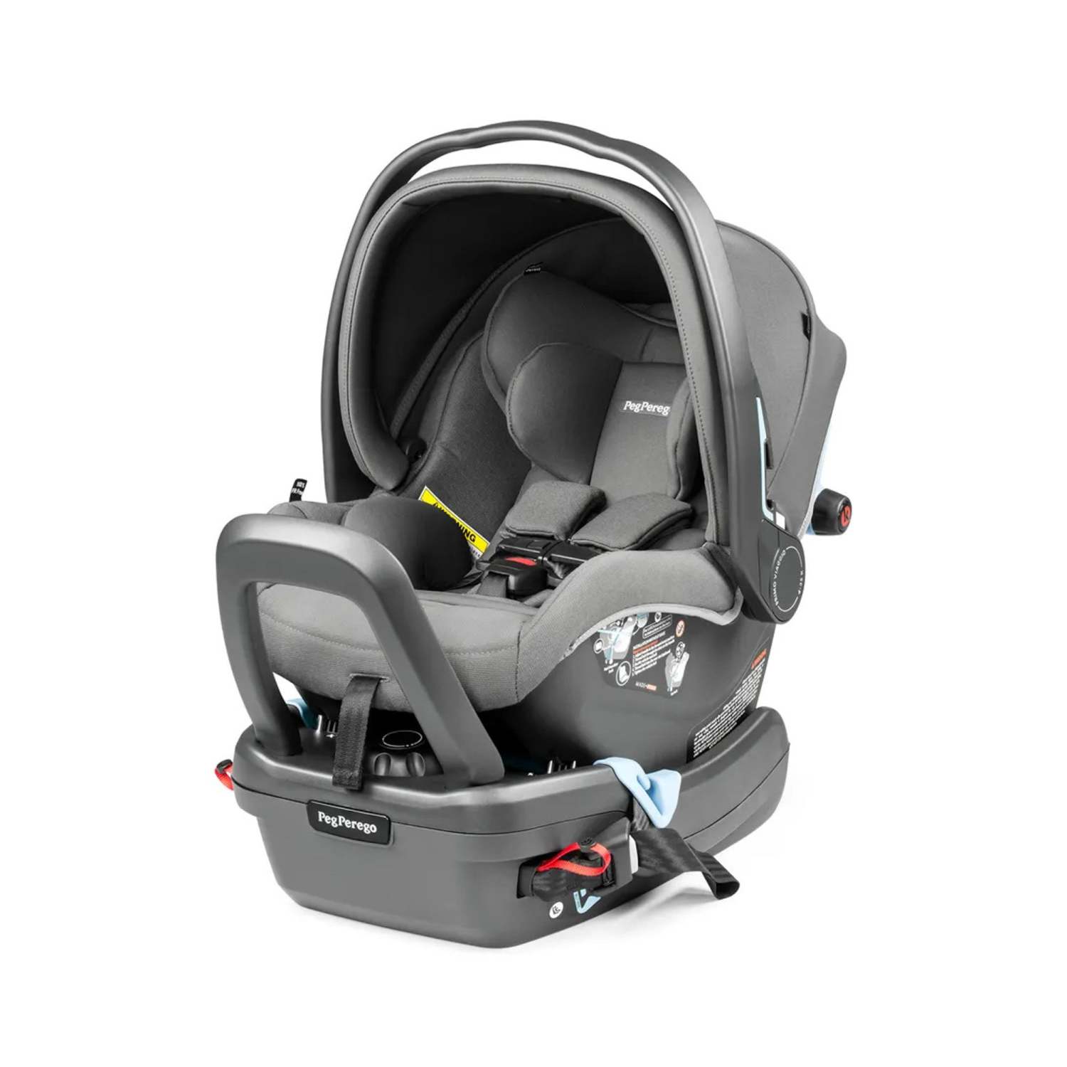 Right Tight System securely locks the base in place. EPS and EPP energy-absorbing foam. Side Impact Protection adjusts to 6 different positions. Dual Stage Cushion System. Harness retainer to stabilize harness clips. For children 4-30lbs and up to 32" in height. Compatible with most Peg Perego strollers. Dimensions with base: 28.5" x 17.25" x 26.5".