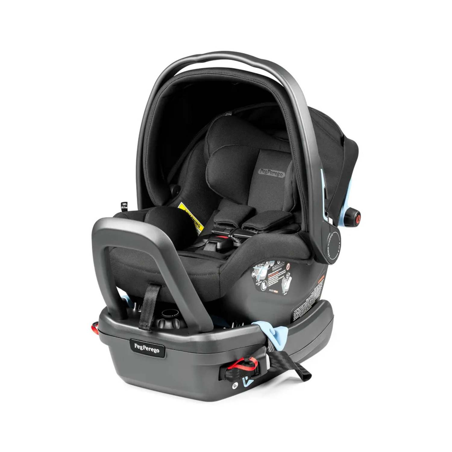 Right Tight System securely locks the base in place. EPS and EPP energy-absorbing foam. Side Impact Protection adjusts to 6 different positions. Dual Stage Cushion System. Harness retainer to stabilize harness clips. For children 4-30lbs and up to 32" in height. Compatible with most Peg Perego strollers. Dimensions with base: 28.5" x 17.25" x 26.5".