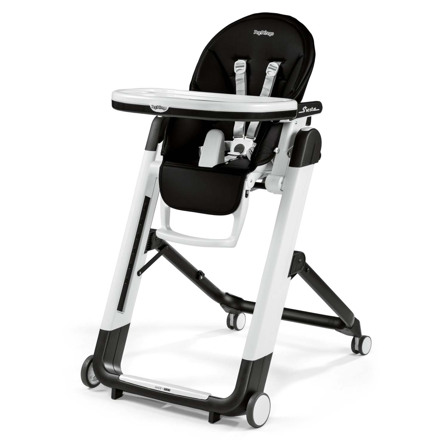 Use as a recliner or high chair for feeding playing and resting. 9 Height adjustment positions grow with baby. 5 Recline positions. Adjustable 5-point harness for customized safety. Comfort Recline feature. Passive restraint for extra safety. Adjustable footrest to customize the height. Mar scratch-resistant wheels. Storage net. Eco leather upholstery for easy clean. Stop & Go automatic safety lock. Dishwasher safe tray with built-in cup holder. Open dimensions: 29.75" x 23.75" x 41.5". Folded dimensions: 11.66" x 23.5" x 33.55".