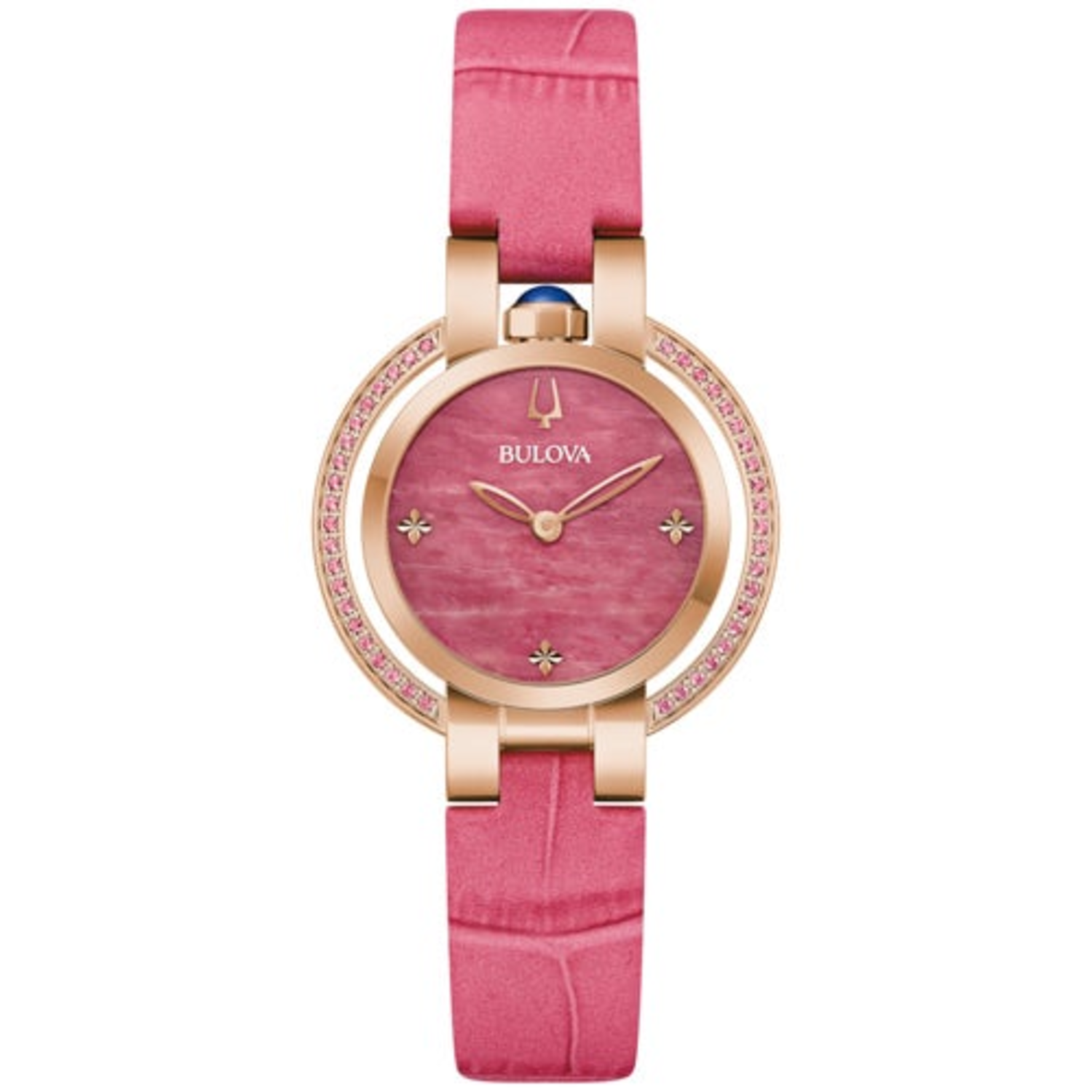 LADIES' RUBAIYAT FOUR SEASON PINK LEATHER STRAP WATCH, PINK RHODONITE DIAL