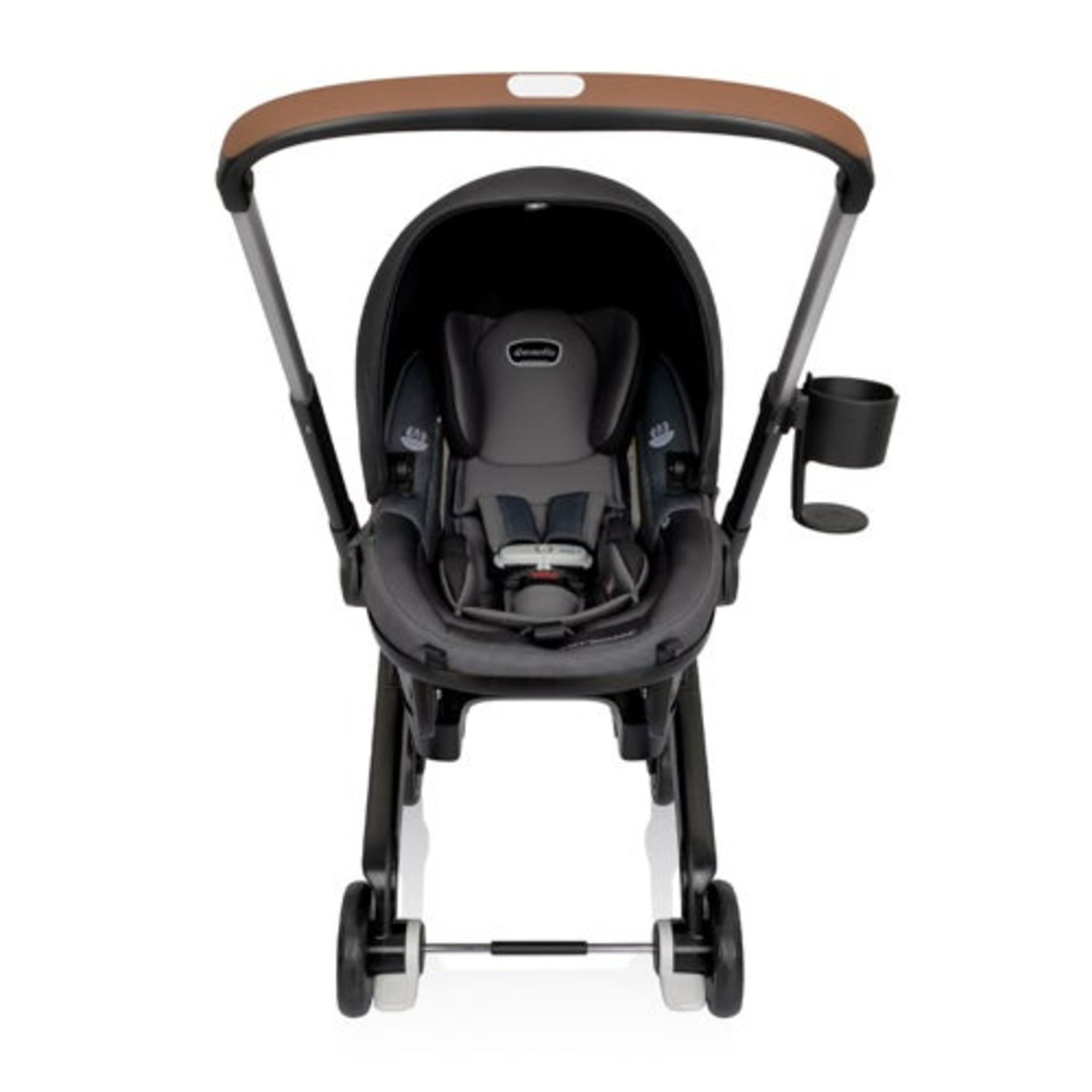 Modes of use: infant car seat infant carrier with wheels infant carrier without wheels stroller. Retract the wheels to carry up an down steps. Anti-rebound base helps absorb and dissipate crash forces. No-rethread harness adjusts to 8-positions. SensorSafe - use app to alert for 4 potentially unsafe conditions. LockStrong Installation and Quick Connectors. Wheels nest securely in the wheel wells in base. Full coverage UPF 50+ canopy. Removable carryall storage bag. For infants as small as 3lbs and up to 35lbs or 15.7" to 32".