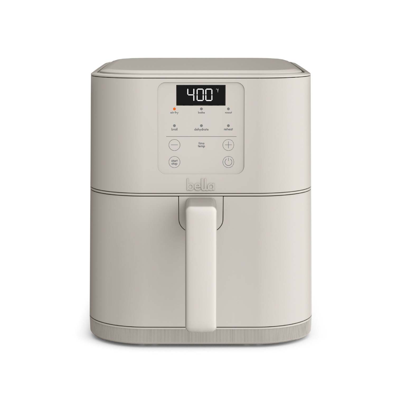 Fits-anywhere kitchenware: Saves up to 50% more space. Innovative XL basket is designed to hold up to 5lbs of food. EverGood Ceramic Nonstick Coating is made without PFAS PFOA PTFE lead and cadmium. Intuitive digital controls and 6 presets" air fry bake roast broil reheat dehydrate" for quick and tasty meals. With 1750 watts of power and circular heat technology. No more tangled mess"cord neatly tucks away. Cool-touch handles and durable construction. Touchscreen controls. Dimensions: 10.9"H x 9.09"W x 15.31"D.