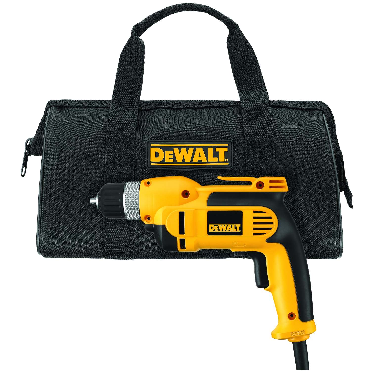 8.0 Amp motor. 3/8" Ratcheting keyless chuck. No load speed: 0-2500 RPM. 650W Max out. VSR Trigger. All ball-bearing construction. Soft grip handle. Single gear reduction. Includes Kit bag. 3-Year manufacturer limited warranty.