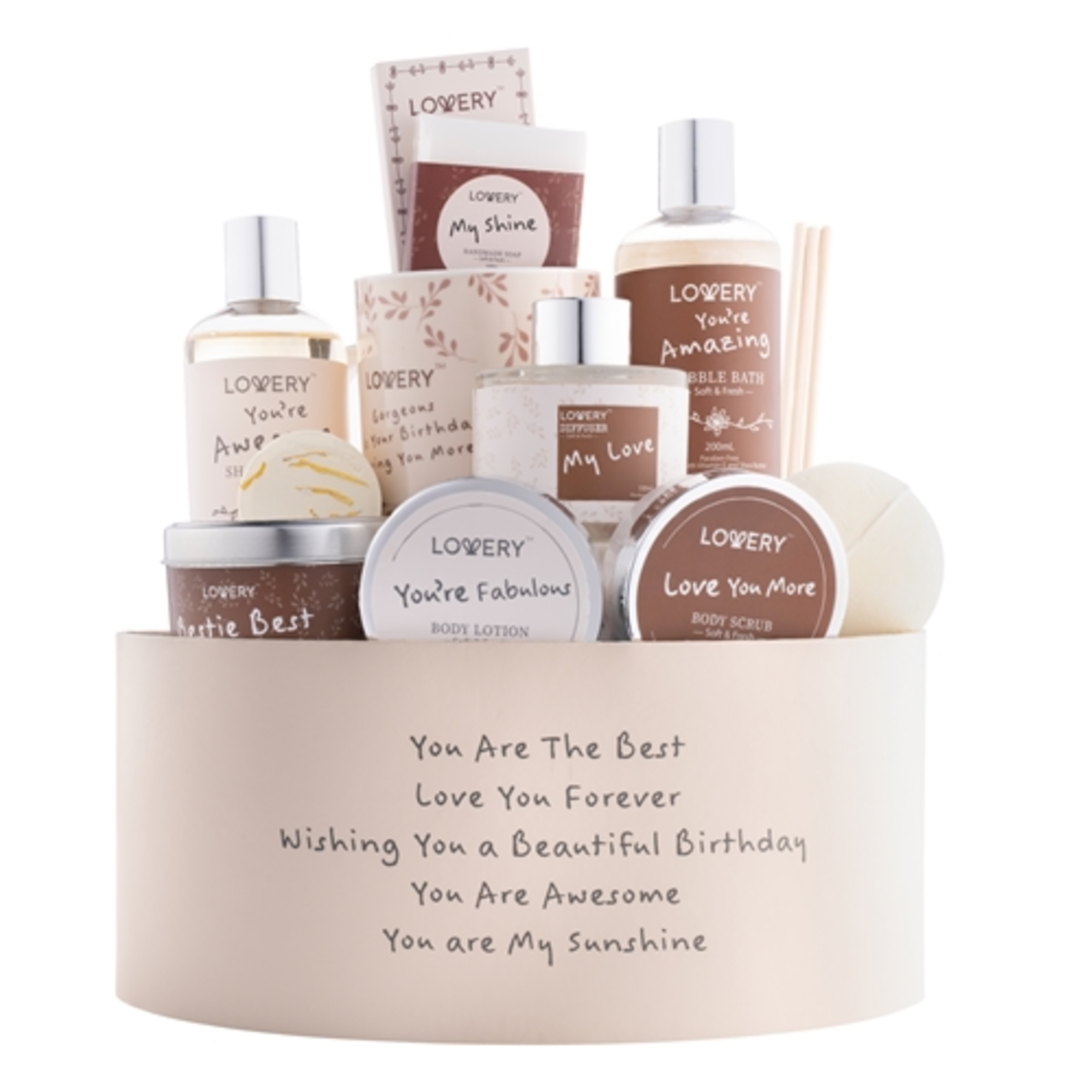 Make every birthday extra special with the LOVERY Birthday Bath Gift Set, thoughtfully curated to take the guesswork out of finding the perfect gift for her. This luxurious gift pack contains all the bath and beauty essentials she needs for an invigorating and relaxing home spa experience, from shower gel to scented candles. The deluxe package includes shower gel, bubble bath, body lotion, body scrub, bath salt, diffuser with reed sticks, a soy candle, a cheerful “Happy Birthday” mug, steamer tablet, handmade soap, and a bath bomb—all beautifully presented and ready to delight. The included birthday mug is exquisitely crafted, perfect for enjoying her favorite coffee while thinking of you. Every bath product is 100% paraben-free and enriched with vitamin E and shea butter, combining anti-inflammatory and anti-aging properties to soothe, nourish, and leave skin feeling smooth and youthful. Gift-ready and elegantly packaged with a special birthday design, this set arrives ready to impress and remind the celebrant just how awesome she is on her special day.