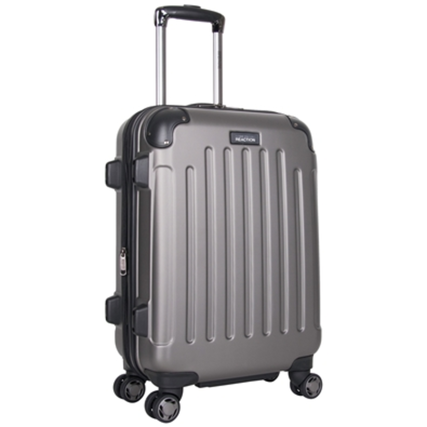 Pack all your travel essentials with ease in this Kenneth Cole Reaction 'Renegade' Collection 20-inch lightweight, hardside, expandable 8-wheel spinner carry-on suitcase. This dependable carry-on suitcase is loaded with amazing features, including a spacious fully lined, tear-resistant interior, multiple interior zipper pockets and mesh pockets, a garment restraint panel to hold your clothes in place, and two elastic shoe pockets. The bag even expands an additional 2-inches for extra carrying capacity when needed. The exterior features four molded corner guard reinforcements that provide maximum impact resistance, protecting your bag from excessive wear-and-tear. Self-repairing coil zippers meant for long-lasting use glide effortlessly around the bag to keep your belongings safe and secure. The luggage boasts a lightweight construction to help you adhere to airline weight restrictions and avoid unwanted airport fees. Smooth, multi-directional 8-wheel spinners provide 360-degree rotation over any surface, allowing you to travel with ease. Features a sturdy, locking, retractable push-button telescopic trolley handle that extends 41 inches tall and is conductive to simple one-handed use. The 20" Carry-on size was designed to meet most yours. Based and international airline carry-on size requirements and to fit into most airline overhead bin compartments. This Kenneth Cole Reaction 'Renegade' 20" Carry-On Suitcase is a modern, yet traditional carry-on suitcase, perfect for travelers who value both style and function. Dimensions: 22" H x 14" W x 9"-11" D. Weight: 7.35 lbs. Backed by a manufacturer lifetime limited warranty.