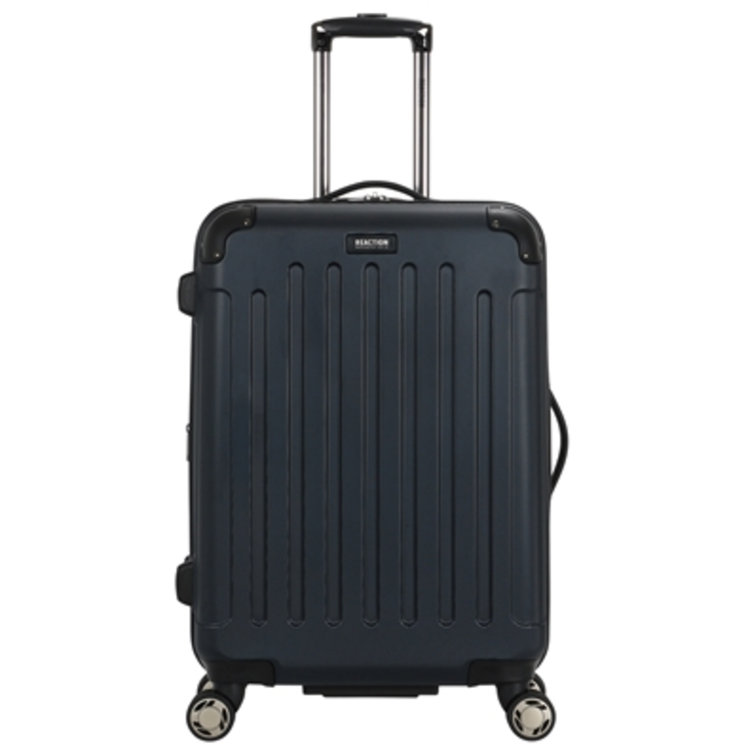 Pack all your travel essentials with ease in this Kenneth Cole Reaction 'Renegade' Collection 24-inch lightweight, hardside, expandable 8-wheel spinner checked suitcase. This dependable, 24-inch checked size suitcase is loaded with amazing features, including a spacious, fully-lined, tear-resistant interior, multiple interior zipper pockets and mesh pockets, a garment restraint panel to hold your clothes in place, and two elastic shoe pockets. The luggage even expands an additional 2-inches for extra carrying capacity. The exterior features four molded corner guard reinforcements that provide maximum impact resistance, protecting your bag from excessive wear-and-tear. The luggage boasts a lightweight construction to help you adhere to airline weight restrictions and avoid unwanted airport fees. Smooth, multi-directional 8-wheel spinners provide 360-degree rotation over any surface, allowing you to travel with ease. Features a sturdy, locking, retractable push-button telescopic trolley handle that extends 41 inches tall and is conducive to simple one-handed use. Kenneth Cole's 'Renegade' 24" luggage is perfect for travelers who value both style and function. Backed by a manufacturer limited lifetime warranty.