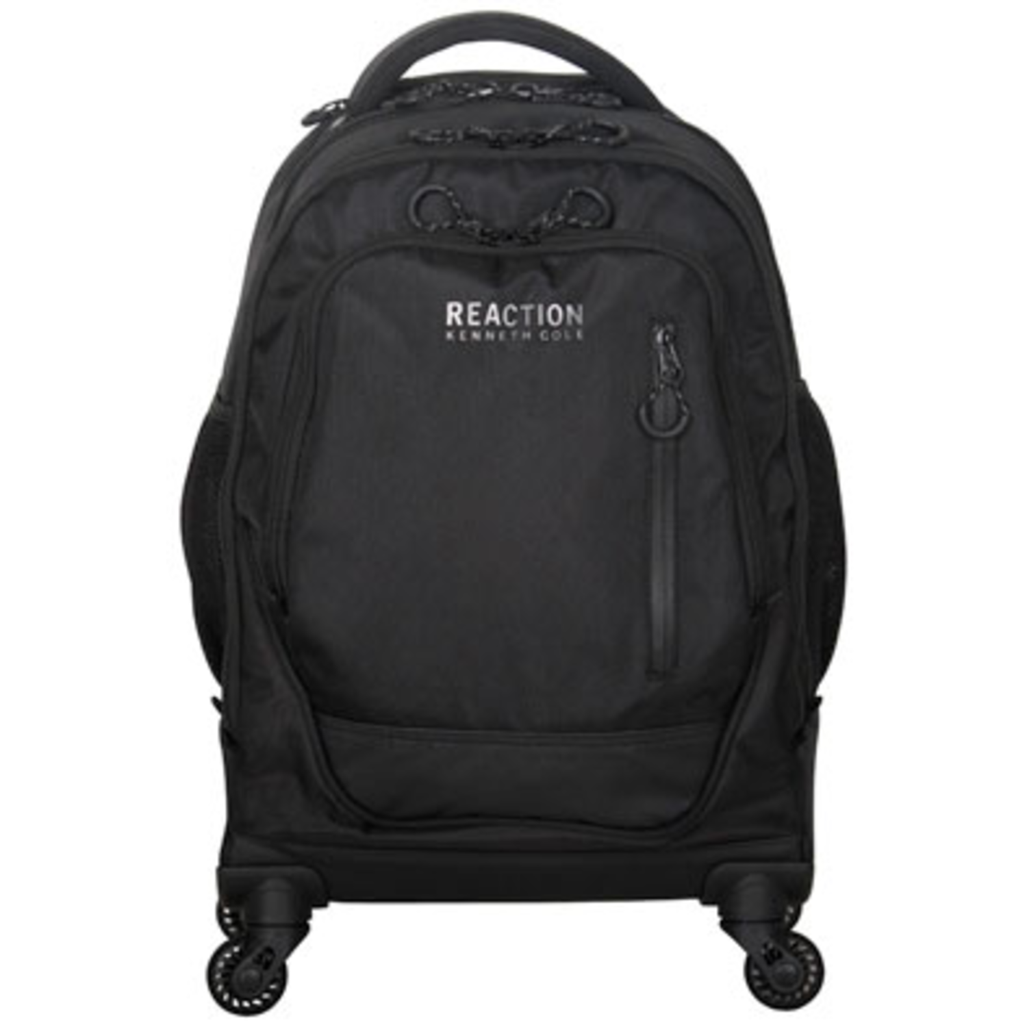 With a modern, unisex design, this feature rich wheeled laptop backpack offers a stylish way to carry your everyday essentials around town. Time to hit the road with this Kenneth Cole Reaction triple compartment 4-wheel spinner rolling 17β laptop computer backpack. Imagine the convenience of a backpack, minus the heavy load weighing on your shoulders. The bag does feature breathable air-mesh padded shoulder straps that hide away when not in use, allowing you to utilize the bag's wheels. With 4-wheel spinners for easy mobility and 360-degree movement and an EVA padded, easy to grab top handle, you can still bring your business essentials with you, without the pain. The sturdy, locking, and retractable push-button telescopic single tunnel tube trolley handle is conductive to one-handed use. The 1680D polyester and coated polyester exterior body material with a fully lined interior are lightweight and hold most laptops with up to a 17β screen. The front compartment is perfect for laptop and tablet protection with additional room for files or other documents. The front exterior pocket Features an organizer pocket for phone, glasses, and all your school/ business needs. A rear compartment includes a file pocket and garment straps to secure clothing, and additional side exterior pockets have room for two beverage/ accessory holsters. A terrific lightweight packing option with endless mobility. Perfect wheeled laptop computer backpack for travelers, students, and business professionals whom value both style and function Backed by a manufacturer lifetime limited warranty.