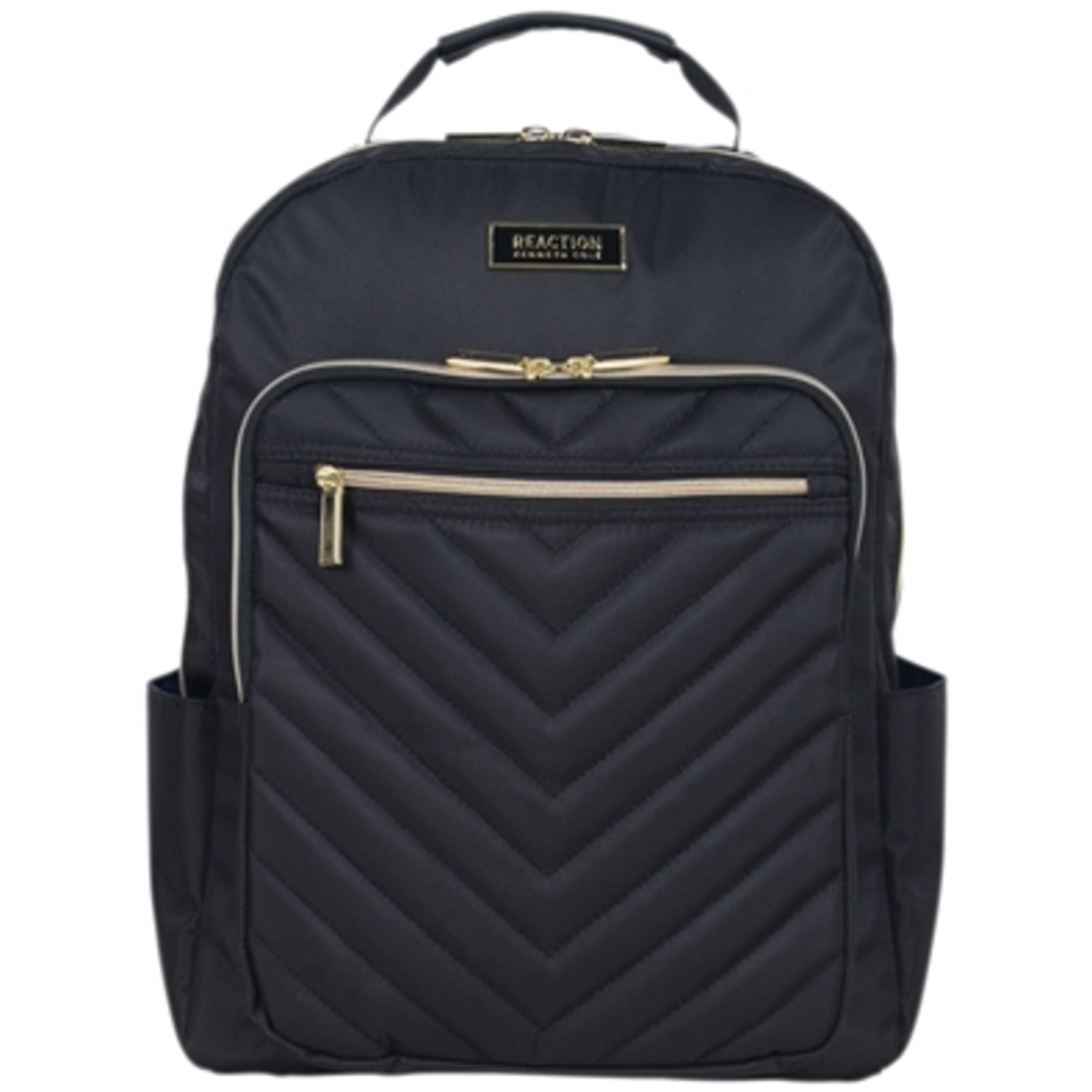Sleek and sophisticated, this chevron quilted laptop backpack from Kenneth Cole Reaction is perfect for professionals on the go. Features a roomy fully lined interior with multiple interior pockets for all your needed essentials. Loaded with features, including a separate padded laptop compartment that holds most laptops with up to a 15-inch screen, a padded tablet pocket in the main compartment, multiple zippered accessory pockets, and dual exterior beverage holster pockets. The exterior features a trolley tunnel to fit over luggage trolley handles for hands free carrying, and a sturdy padded top handle for easy carrying. The perfect fashion-forward laptop backpack to keep your business essentials fashionably organized while on the go. Backed by a manufacturer lifetime limited warranty.