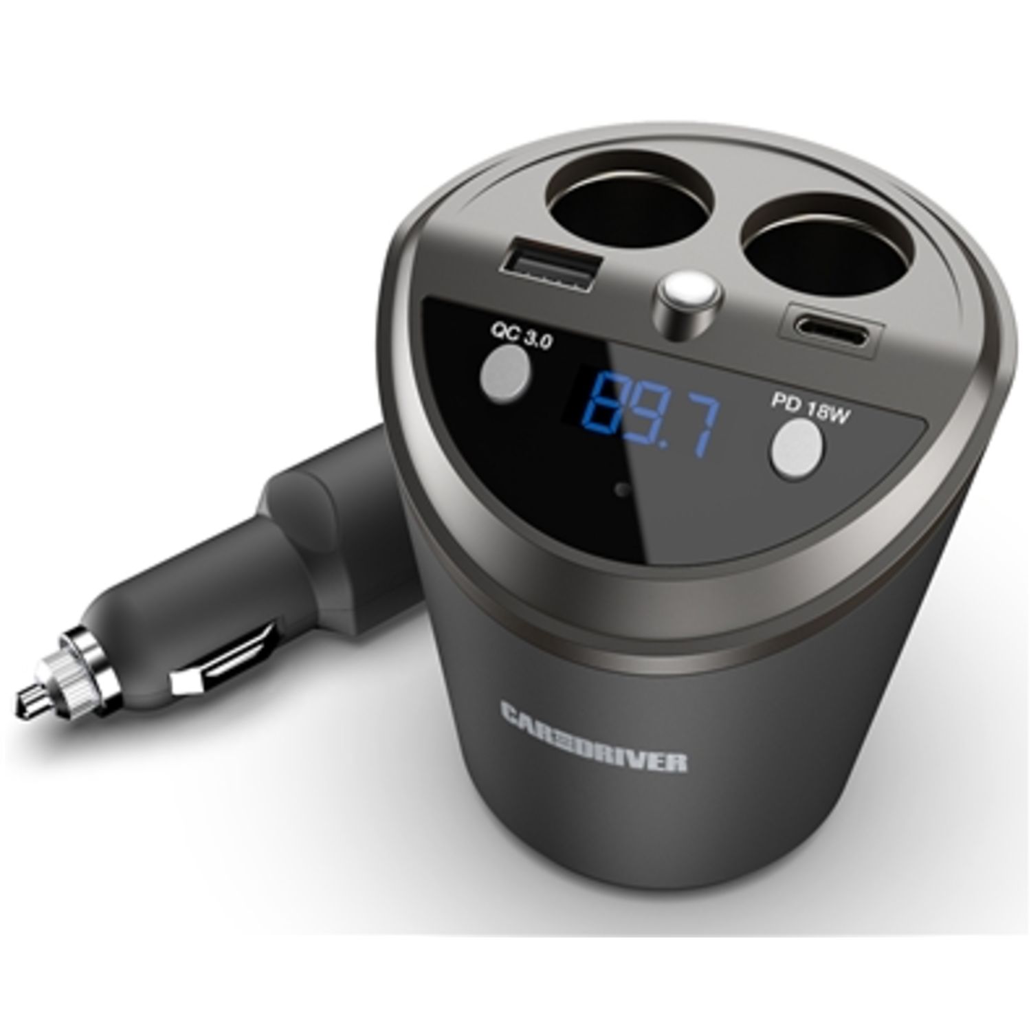The Handsfree FM Transmitter with 18W PD and Google/Siri Activation Charging Cup transforms your car's stereo system into a hands-free hub for music and calls. Equipped with a built-in mic and dedicated buttons for Rewind, Skip, Play/Pause, and Call, it offers total control of your audio experience. Activate your smart assistant by holding the Skip button, allowing you to easily access Siri, Google Assistant, or Alexa for voice commands. The transmitter also includes dual 12V ports, providing power for any device that uses a standard vehicle 12V plug. With the easy-to-read LED display, you can quickly find the ideal FM frequency for your audio, making this transmitter a convenient and versatile addition to your car setup.