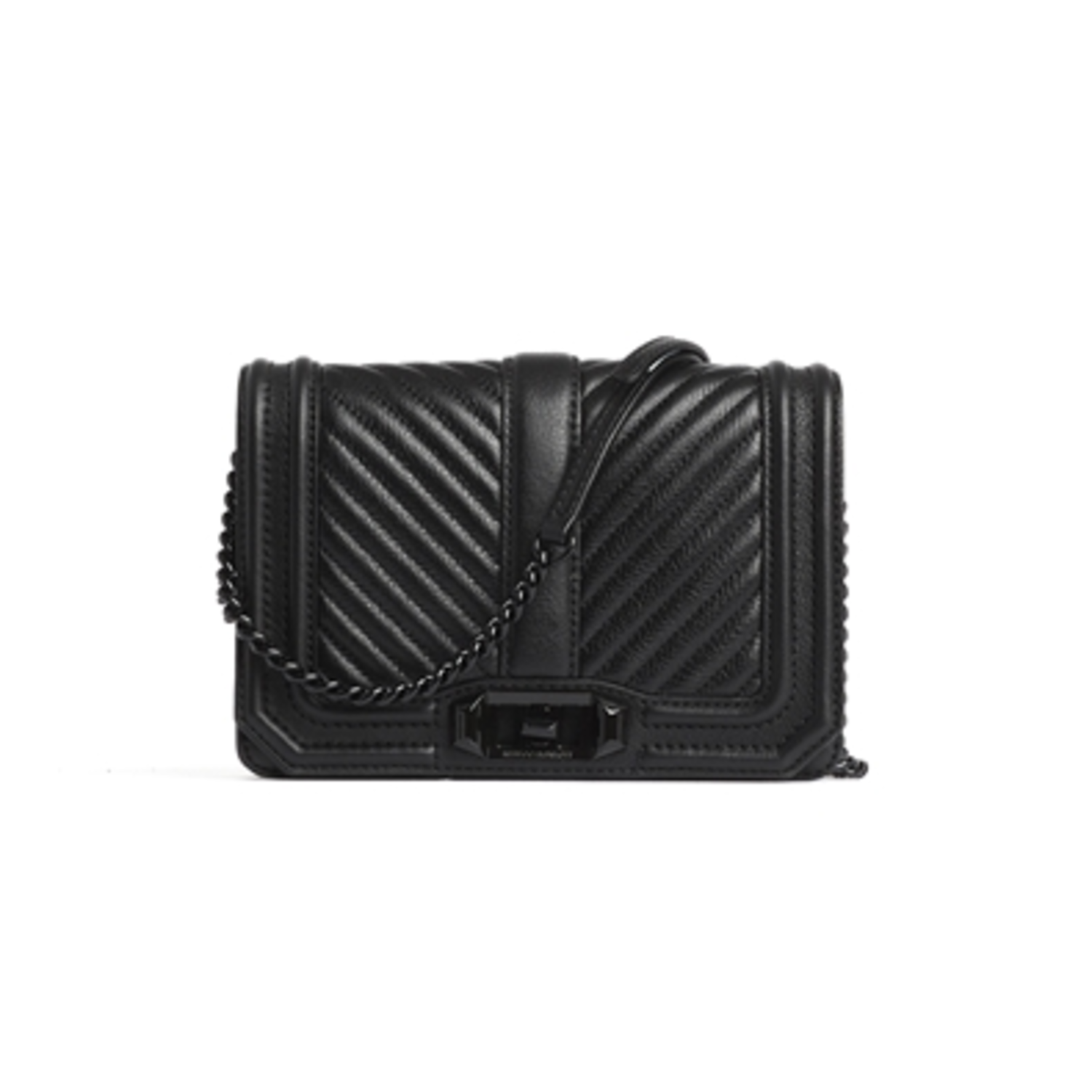 CHEVRON QUILTED SMALL CROSSBODY, BLACK