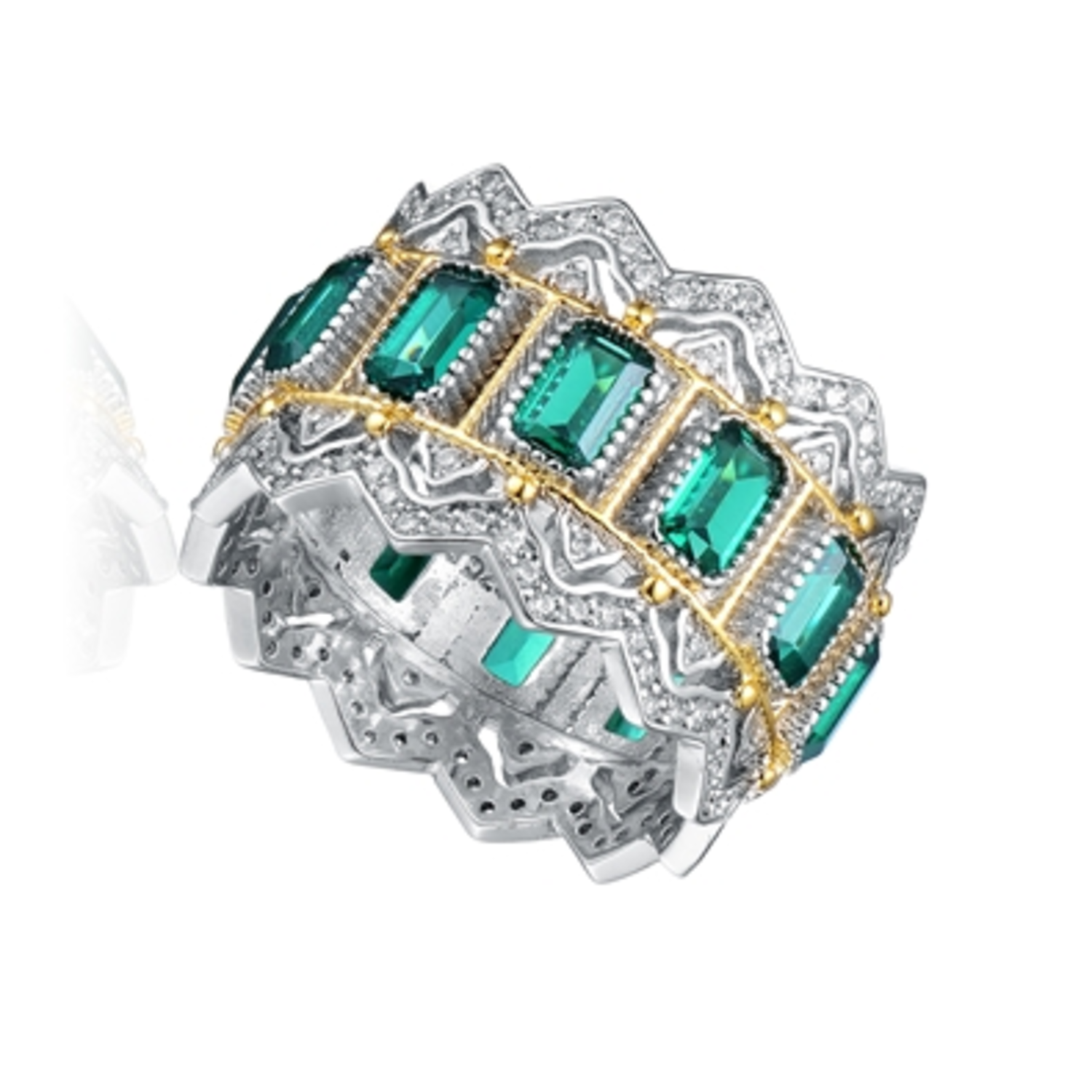 CZ RHODIUM STATEMENT RADIANT GREEN RING, GREEN, 6"