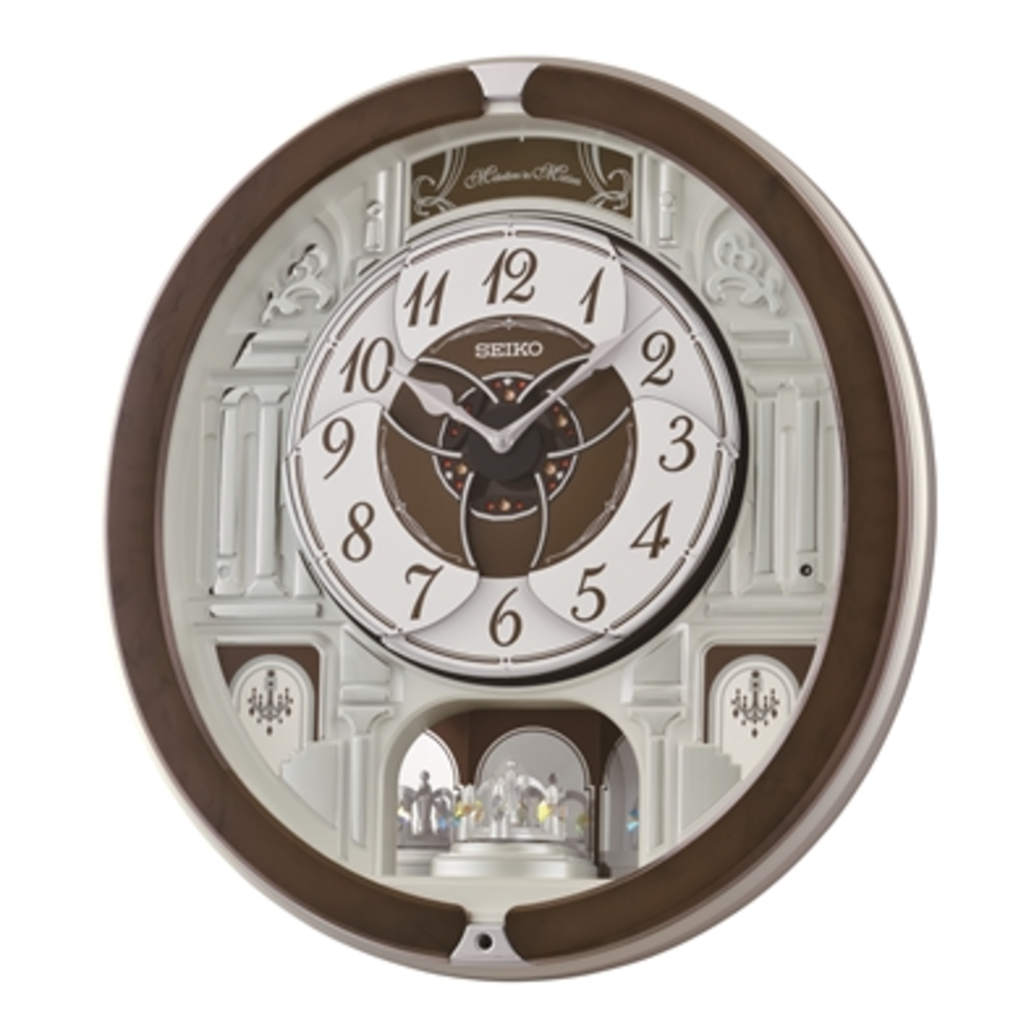 Seiko Snow Castle Melodies In Motion Clock: A Magical Harmony of Time, Elegance, and Enchantment. Bring the wonder of winter into your home with the Seiko Snow Castle Melodies In Motion Clock. Designed with a rich dark brown frame and a whimsical snowy castle theme, this captivating timepiece blends charm and sophistication in perfect harmony. On the hour, the clock springs to life with motion and melody, playing one of 40 finest-quality sound melodies, each with opening and closing sequences that add theatrical flair. Complete with 22 sparkling crystals dazzle and dance as part of the clock's magical display. Crafted with crystal glass for clarity and elegance, the Snow Castle Clock features: light sensor to automatically silence melodies and motion in the dark, demonstration button to preview the show anytime, volume control to suit your space, powered by four C batteries (included) for hassle-free operation and Quartz movement for unparalleled accuracy in timekeeping. Measuring 17 x 16 x 4 inches, it's perfectly sized for any wall space—ideal for bedrooms, living rooms, or entryways. Suitable for tweens to adults, this clock makes a stunning statement or a thoughtful gift. Transform your living space into a sanctuary of elegance and melody with the Seiko Snow Castle – where timeless beauty meets musical enchantment.