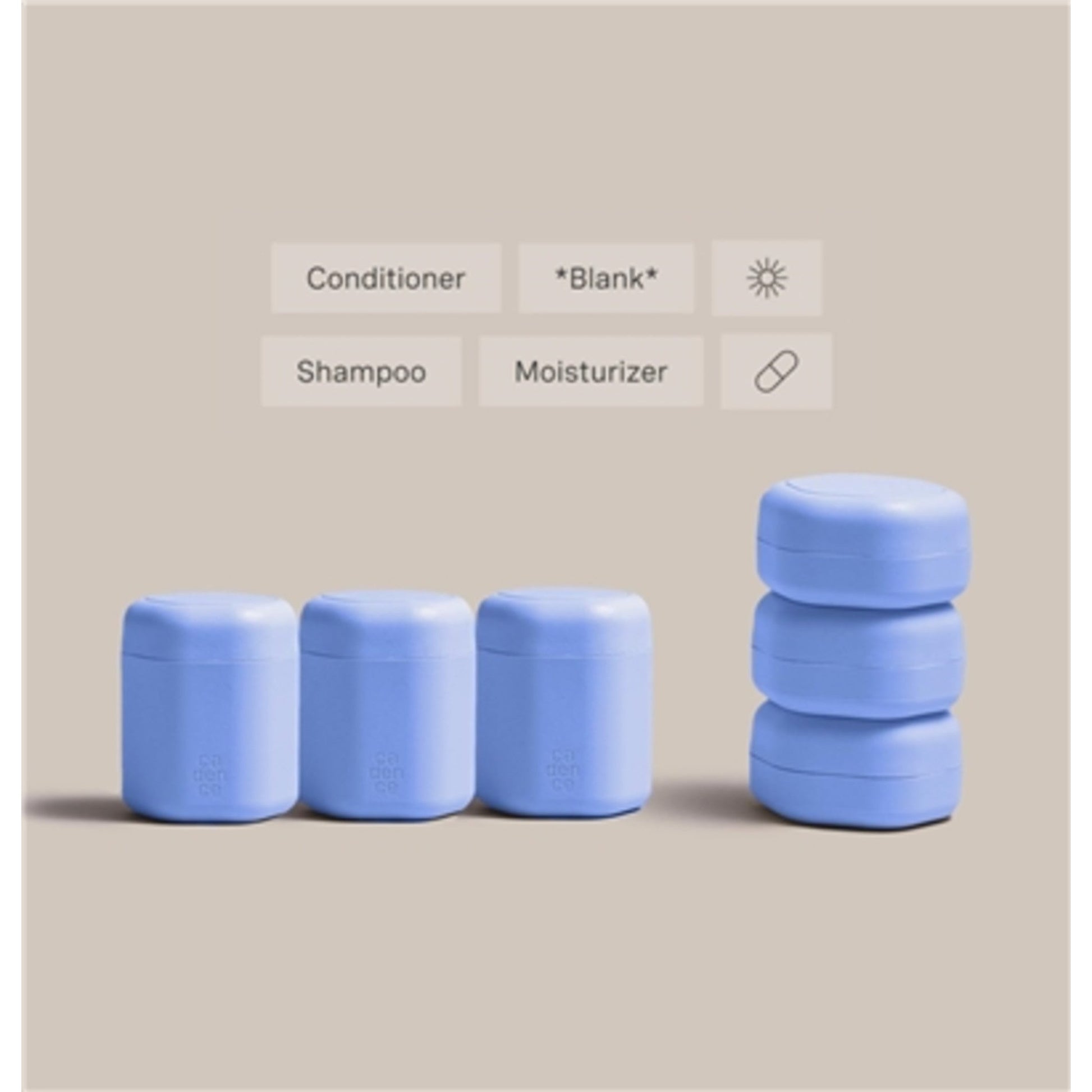 A combination of our best-selling Capsules, the Starter Set includes three Medium Capsules (1.32 fl oz each) and three Small Capsules (0.56 fl oz each) for more flexibility while on the go. The perfect set for longer trips and more specialized routines.(Color : Pacific). Includes 1 - Shampoo Label. 1- Conditioner Label. 1 - Moisturizer Label. 1–Sun Icon Label. 1 - Pill Icon. 1 - Blank Label. TSA Approved.