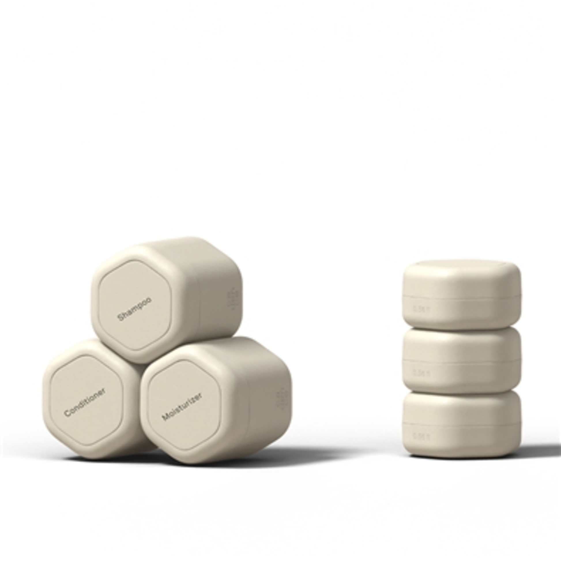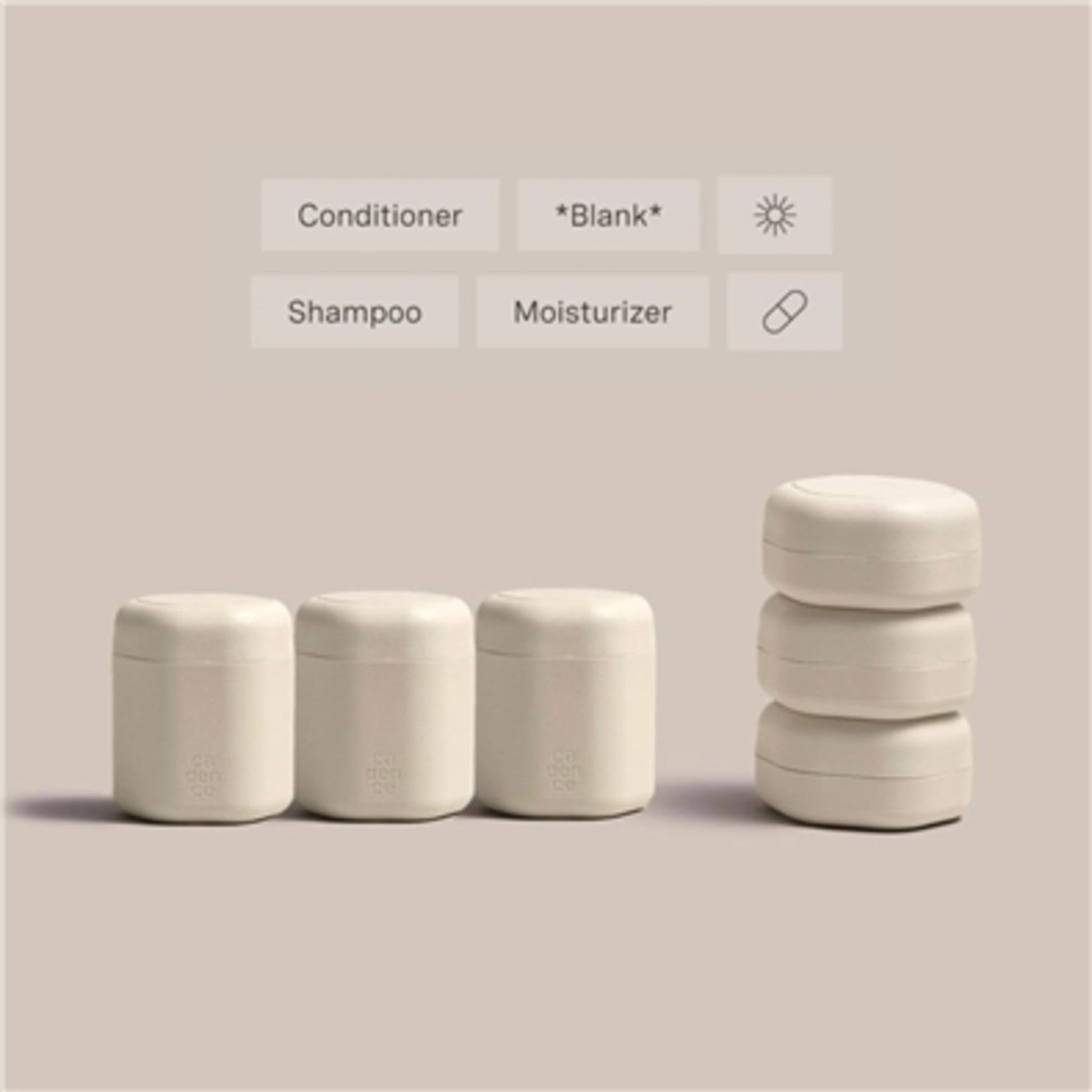 A combination of our best-selling Capsules, the Starter Set includes three Medium Capsules (1.32 fl oz each) and three Small Capsules (0.56 fl oz each) for more flexibility while on the go. The perfect set for longer trips and more specialized routines.(Color :Sand). Includes 1 - Shampoo Label. 1- Conditioner Label. 1 - Moisturizer Label. 1–Sun Icon Label. 1 - Pill Icon. 1 - Blank Label. TSA Approved.